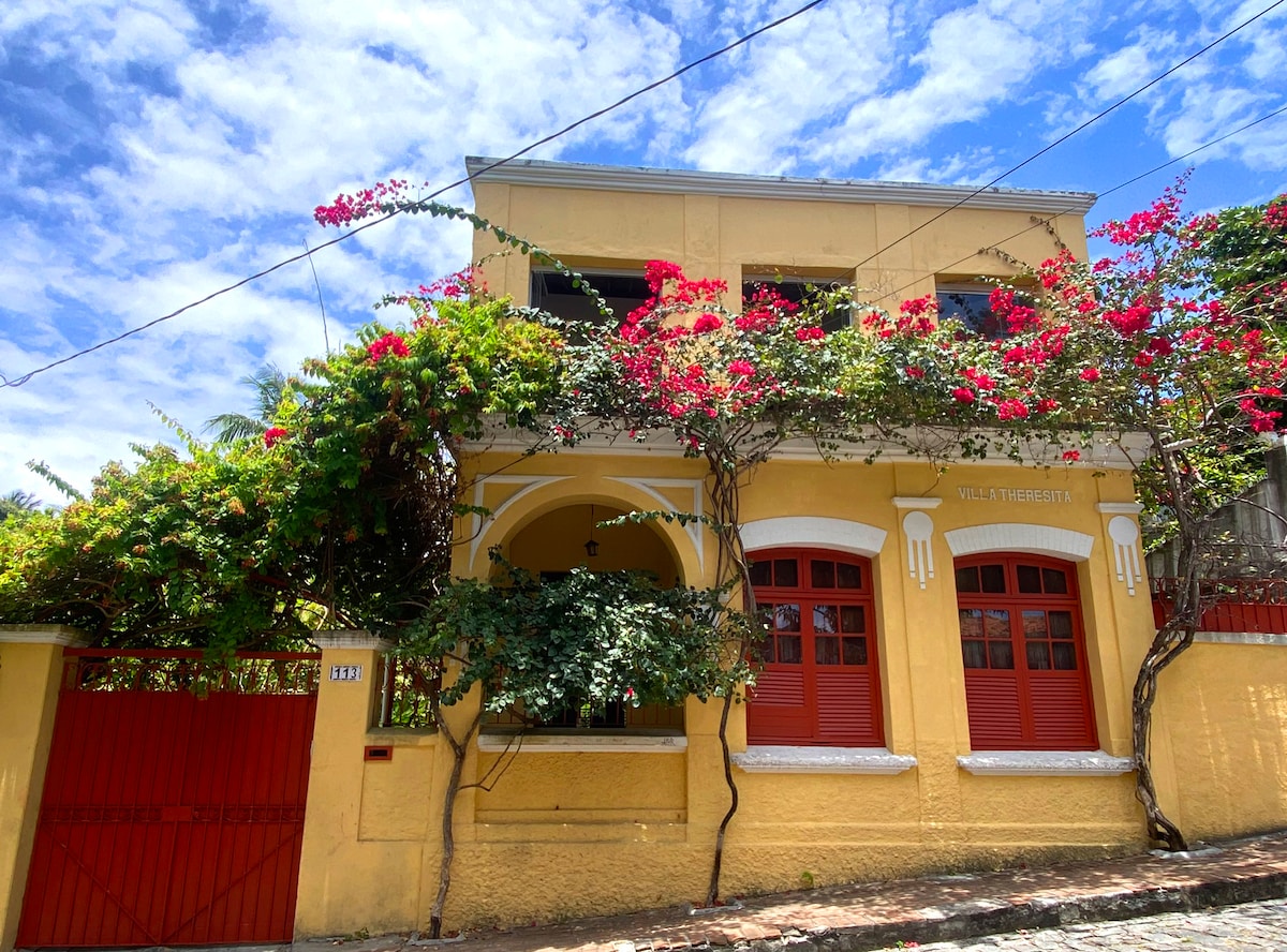 Casa no coração do sítio histórico de Olinda com ofurô. Aproveite o charme de andar a pé pelo centro histórico. Casa histórica e aconchegante, próxima ao Mosteiro de São Bento, igrejas, ateliês, cafés, restaurantes, bares, supermercado e principais pontos turísticos.