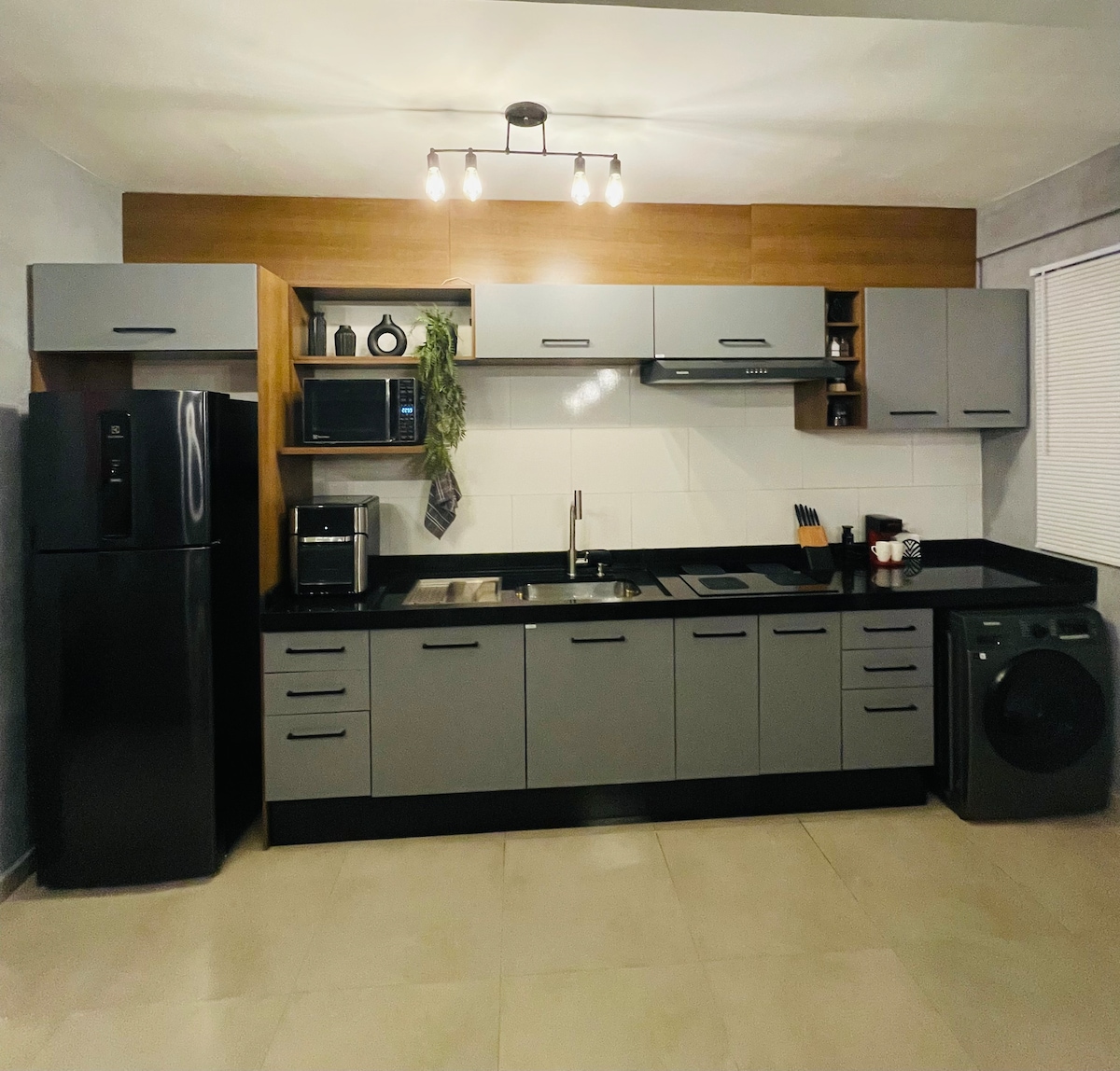 Localizado a 80 metros da Praia da Jabaquara e a 1km do Centro Histórico. Conta com estacionamento, ar condicionado, TV Smart, Cama King, Sofá Cama, micro-ondas, geladeira, pia, filtro, sanduicheira.