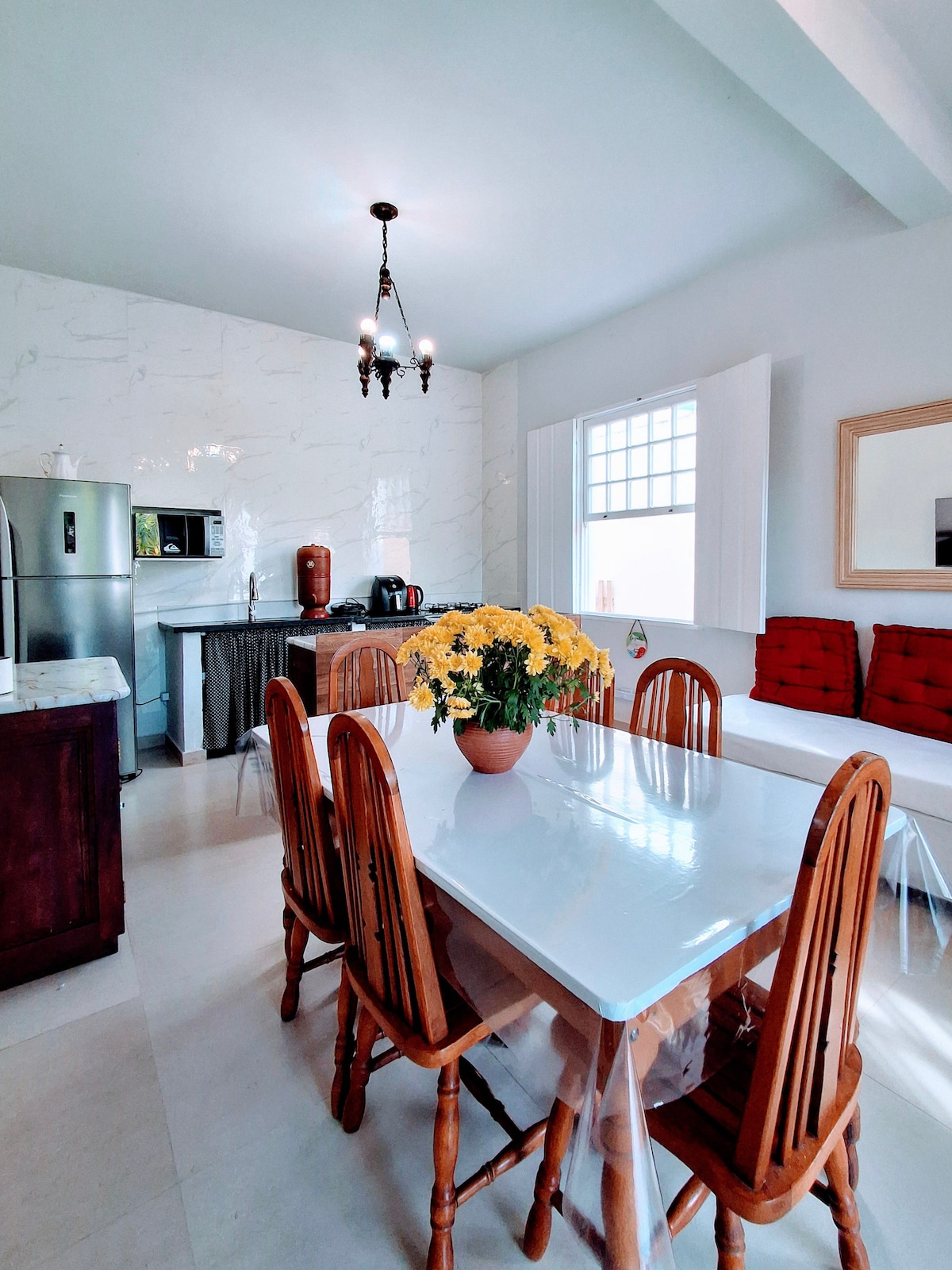 Se conecte ao descanso neste lugar tranquilo e bem-localizado. A Casa Sol, é um deleite! Linda, arejada, amorosamente planejada nos mínimos detalhes. A suíte, espaçosa e arejada, conta com uma cama king e outra de solteiro. O banheiro completo é espaçoso e confortável. A sala, com varanda com rede, voltada para o jardim e piscina, se conecta à cozinha e um lavabo maravilhoso. É tão charmosa nossa Casa Sol, que até em dias de chuva ela é queridinha dos hóspedes!
