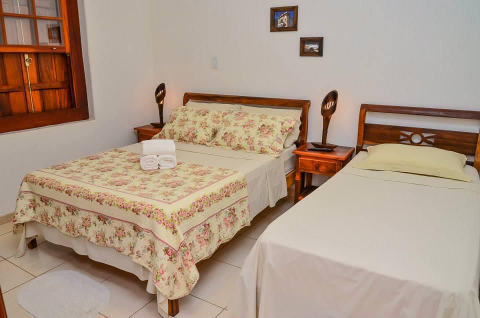 Acomodação ideal para 4 pessoas, com 1 cama casal e 2 camas solteiro. Suíte com varanda e rede, equipada com TV a cabo, ar-condicionado, frigobar e secador de cabelo.