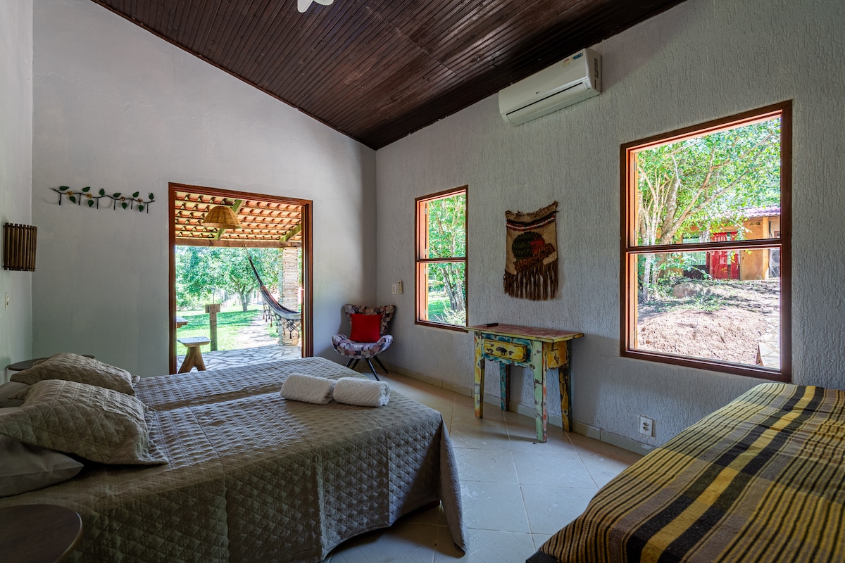 The Romantic Bungalow is located in Villa Assisi, a private property with 29 hectares (290,000 m2) of carefully preserved original native Cerrado vegetation. Located in the Serra dos Pireneus Environmental Protection Area (APA), it features trails and four waterfalls within the property. Best of all, it's just 2.9 km from the city of Pirenópolis, Goiás, one of the first cities in Goiás and declared a national heritage site in 1989.