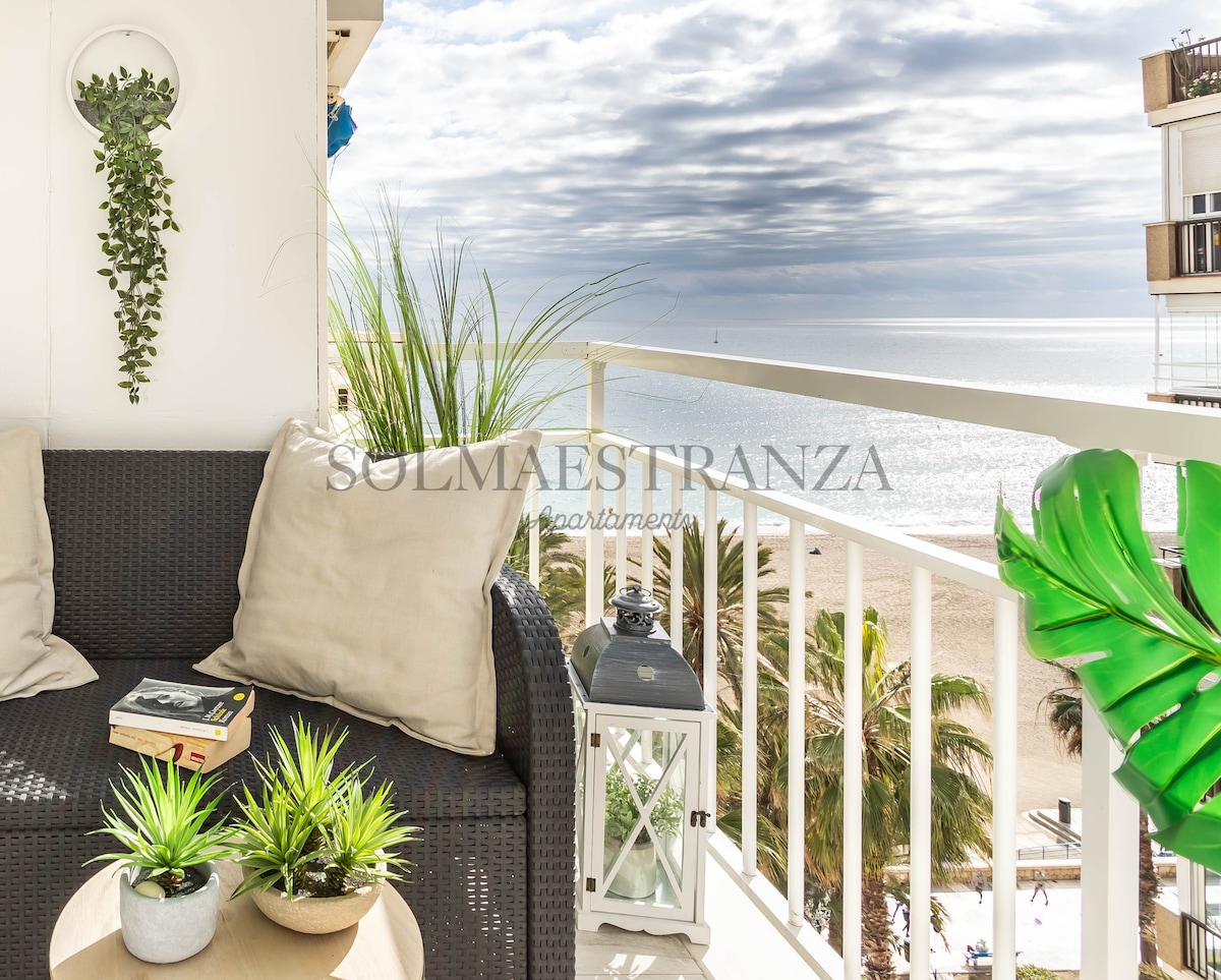 LAS VISTAS DE UN GRAN YATE Y EL CONFORT DE LA MEJOR VIVIENDA. Luminoso y tranquilo apartamento a 50 metros de la playa con vistas espectaculares sobre el mar desde su amplia terraza. Renovado y con decoración moderna. Tiene WIFI CON FIBRA ÓPTICA DE 300MB. Este apartamento situado en la última planta del edificio que tiene aire acondicionado, Smart TV y todos los electrodomésticos. Exclusiva zona de playas, a 2,5Km del centro, junto a la parada de autobuses y muy bien comunicado.