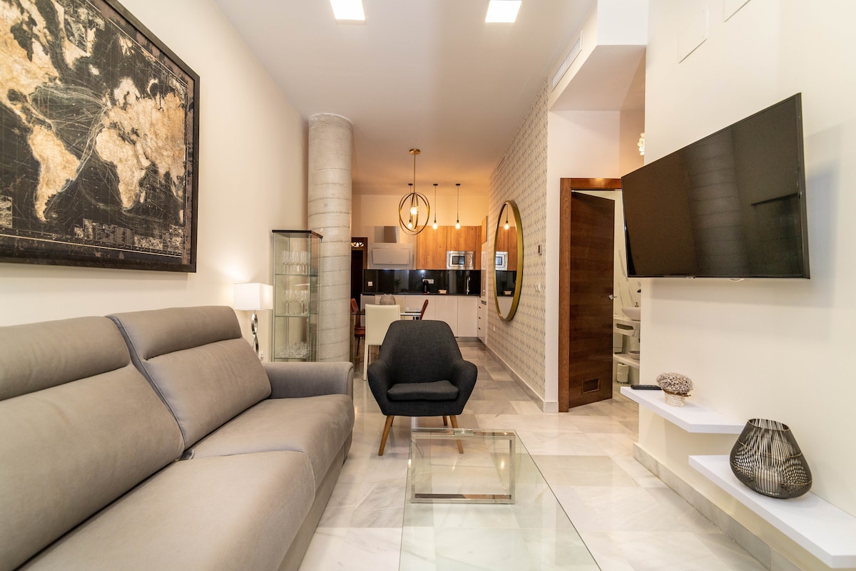 ★ Unparalleled location – opposite the Cathedral ★ ★ High-end stunning décor ★ ★ Daily housekeeping ★ ★ Stunning direct views of the Iconic Cathedral★ Experience refined luxury in a designer studio apartment just steps from the Cathedral. Features a private queen bedroom, elegant living area with a plush sofa and a coffee table, Smart TV, rain shower, and premium finishes. 2 large windows open into Malaga's best views - front row of the Cathedral adding to this unique upscale studio apartment!
