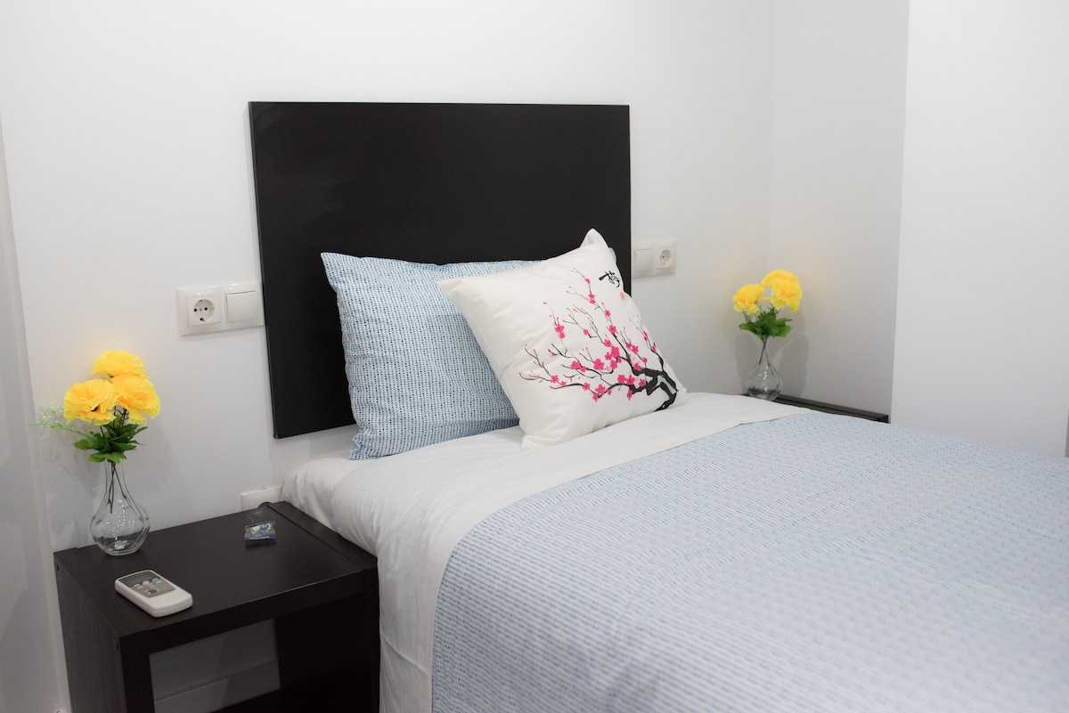 Habitación de hotel, interior (ventana al hall) con baño privado con ducha, aire acondicionado, TV de pantalla plana, secador de pelo. Esta ubicado en pleno centro de Málaga, en calle Lagunillas,34 en el barrio artístico de moda "Lagunillas", a 150m de plaza Merced, a 10 min andando de la playa. Check-in posible desde las 13h30, check-out máximo a las 11h. Cerca de todo tipo de negocios, a 150 metros de la Fund Pablo Ruiz Picasso, a 400m del Museo Picasso, de la Alcazaba y del Teatro Romano.
