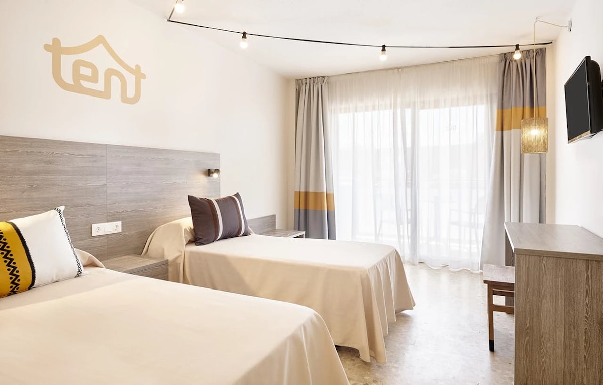 Our Sea View Double Room, designed for two adults, is a 26 m² space that combines comfort, spaciousness, and abundant natural light. This room features two single beds and is equipped with everything you need for an ideal stay: a private bathroom, air conditioning, TV with Chromecast, a telephone, and a safe. A bright and functional space with views that invite you to dream. Unlimited brunch is included in the price.