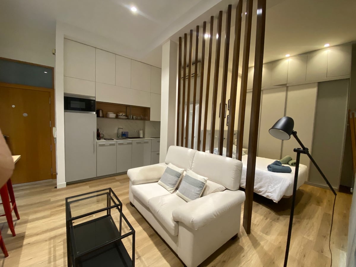Located in the center of Malaga, a few meters from Calle Marqués de Larios (commonly known as "Calle Larios"). This apartment offers great opportunities to enjoy the city of Malaga, it allows you to reach all the tourist spots of Malaga on foot and in a few minutes. Bright apartment with a single room with a queen size bed and a sofa bed. It has an equipped kitchen and bathroom. The apartment is perfect for couples and families. Very cozy and comfortable with WIFI and AC.