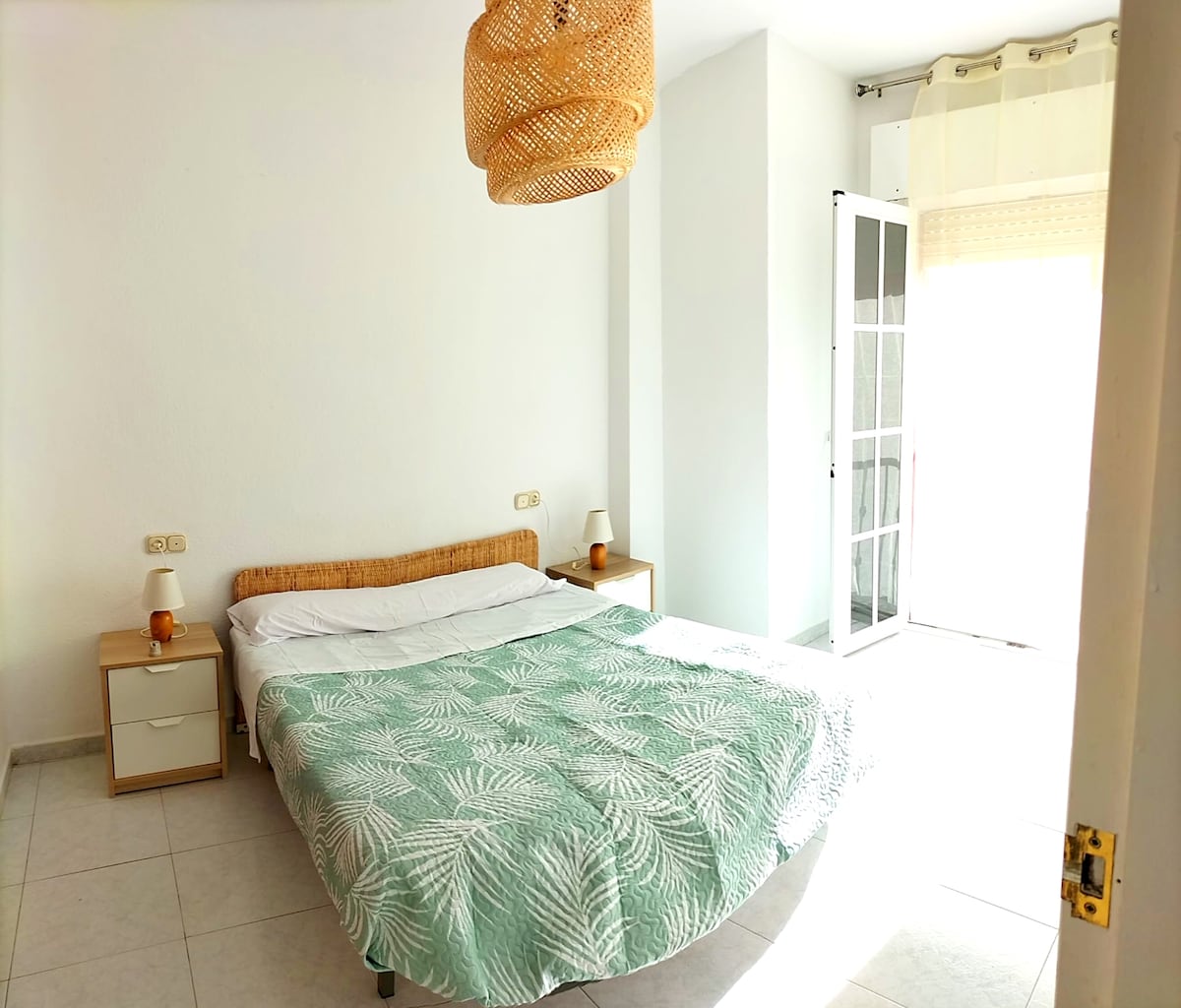 Impecable apartamento, totalmente equipado con: aire acondicionado/calefacción, cocina completa (lavadora incluida), baño, dormitorio con cama matrimonio, sala de estar con sofá convertible en cama de 180cm (smart TV, Wifi) y zona de comedor. Parking en al misma puerta del alojamiento Dispone de piscina comunitaria Ubicado en una zona muy tranquila a 7’ andando de la playa y centro del pueblo, con chiringuitos, tiendas y terrazas. Centro comercial cercano y parada de autobús a 7’.
