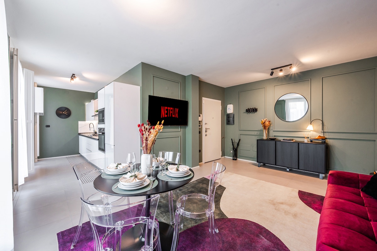 ★★★ EMMA’S STATION★★★ Elegant apartment with a convenient PRIVATE GARAGE located on the first floor of a modern building. It is strategically located between the Central Station, the Enzo Ferrari Museum, and the famous Military Academy. The apartment features all the amenities needed to ensure a luxurious stay, whether you're here for business or pleasure. 4K UHD Smart TV with Netflix in every room, air conditioning, Wi-Fi, washer-dryer, dishwasher, and safe.