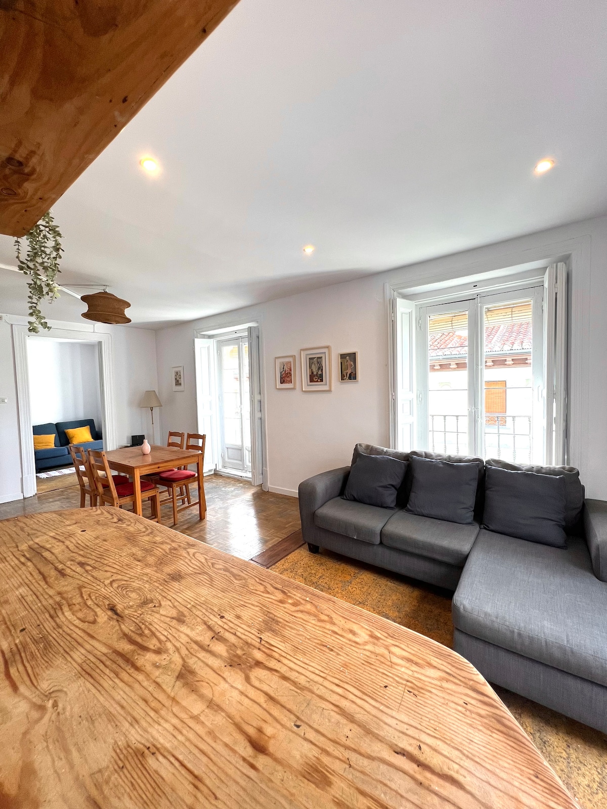 Bright and spacious 70 m² flat, ideally located in Lavapiés, Madrid. You will be in the city centre. Fully equipped, it can accommodate up to 2 guests and is perfect for medium and long-term stays. Ideal for remote working. An ironing set, a hair-dryer and a washing machine are also available. Linens and towels will be provided. For more information, kindly read the detailed description below. :)
