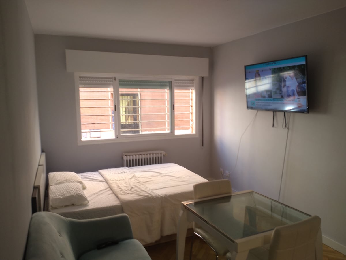 En pleno centro de Madrid, el apartamento está situado en una de las calles de moda del barrio de Chamberi, donde podemos encontrar una gran oferta gastronómica, incluidos restaurantes con Estrella Michelin y también de ocio, bares y cafés completamente aislado, no tiene ruido Acogedor y confortable cuenta con todo tipo de comodidades. Desayuno☕️🍰. El Estadio Santiago Bernabéu está a 10 minutos a pie. Mínimo DOS noches de estancia.
