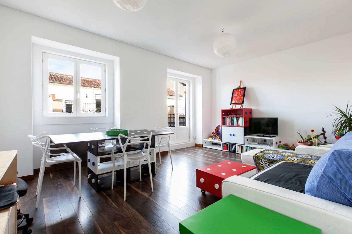 A 20'del aeropuerto,céntrico apartamento de diseño recién reformado en el barrio más característico de Madrid.Silencioso,cuenta con 2baños,2habitaciones,cocina equipada,amplio salón,WIFI fibra óptica,sabanas,toallas,secador de pelo,productos baño