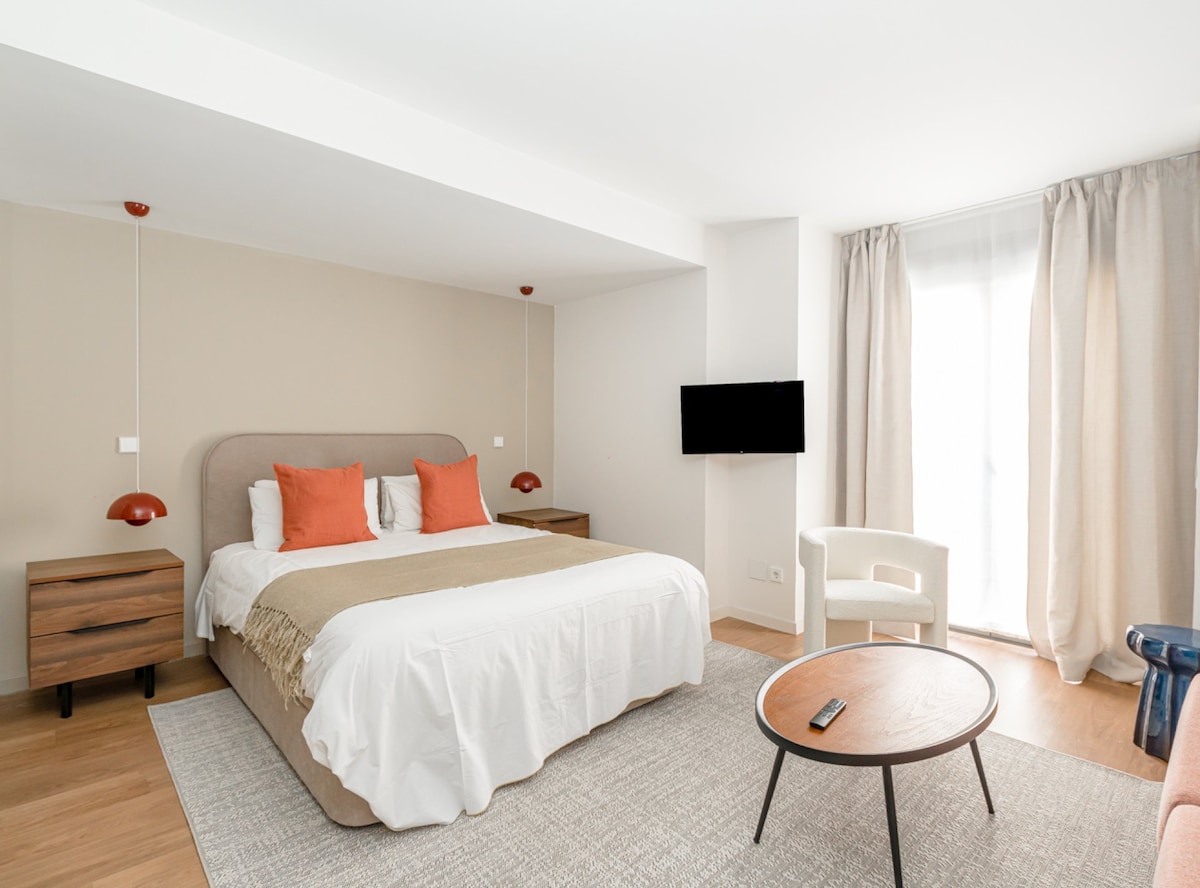 Nuestra opción más acogedora. Con nuestros estudios te ofrecemos un espacio funcional y abierto para desconectar y sentirte en casa después de un día frenético. Con capacidad para hasta 2 personas, contarás con un espacio totalmente amueblado y diseñado por nuestro equipo de interioristas donde le podrás sacar el mayor partido. Nuestros estudios cuentan con un amplio baño con ducha, cocina abierta, Smart TV, cama doble, amplios ventanales con luz natural, todos los suministros y Wi-Fi.