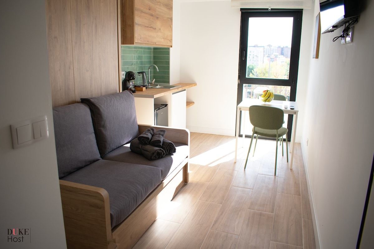 Sumérgete en la comodidad de nuestro alojamiento céntrico en Madrid, con un estudio moderno con todas las comodidades para una estadía estupenda. A solo 20 minutos del centro y cerca del metro L5, disfruta de una estancia excepcional con servicios cercanos para mayor conveniencia. ¡Haz tu reserva ahora y vive una experiencia única en Madrid!.