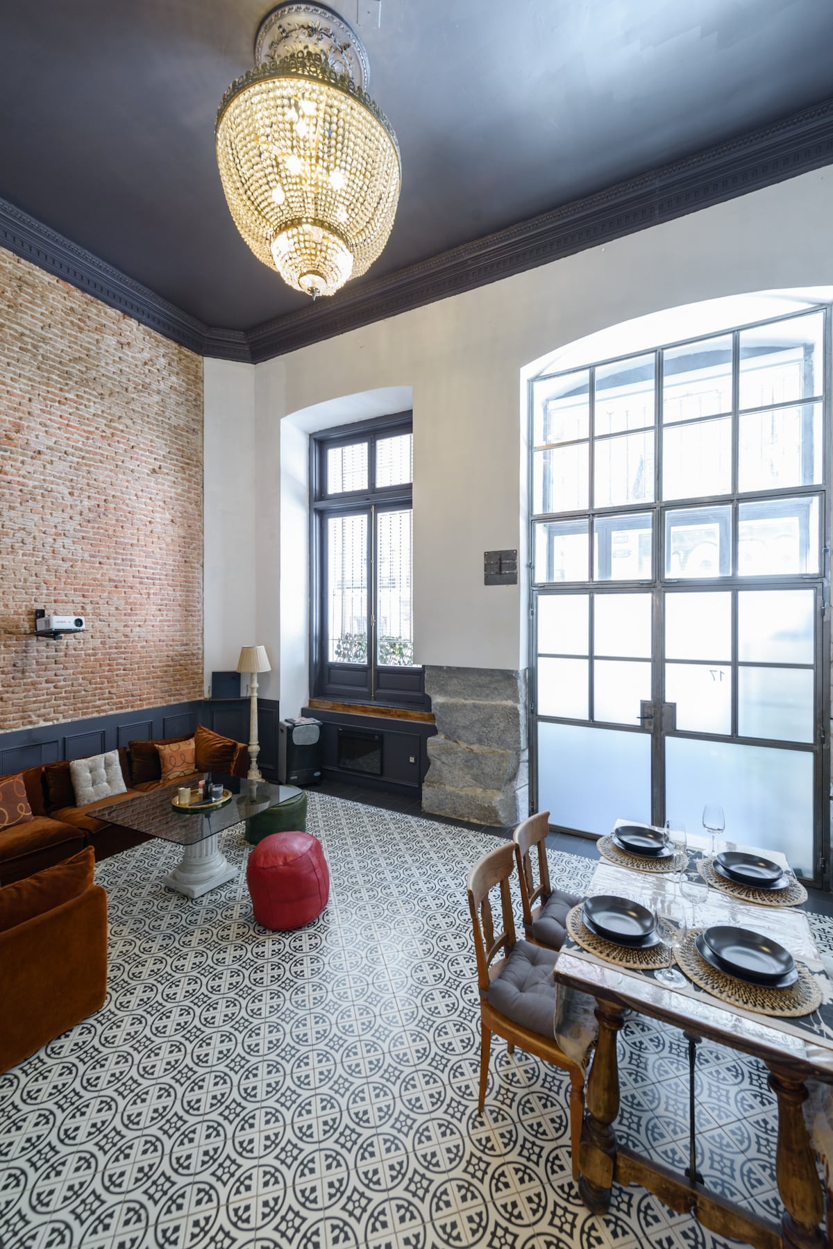 Beautiful and compact loft-style cozy space with double height, full of natural light and warmth, located in the center of Madrid. Recently renovated. Part of a 19th-century manor villa, bathed in natural light and featuring 4.5-meter-high ceilings. A haven of calm and elegance in the historic heart of Madrid. Located on the Museum Mile, next to El Retiro Park, the Reina Sofía and the Prado. Just steps from Atocha Station, surrounded by art, gardens, and monumental architecture.