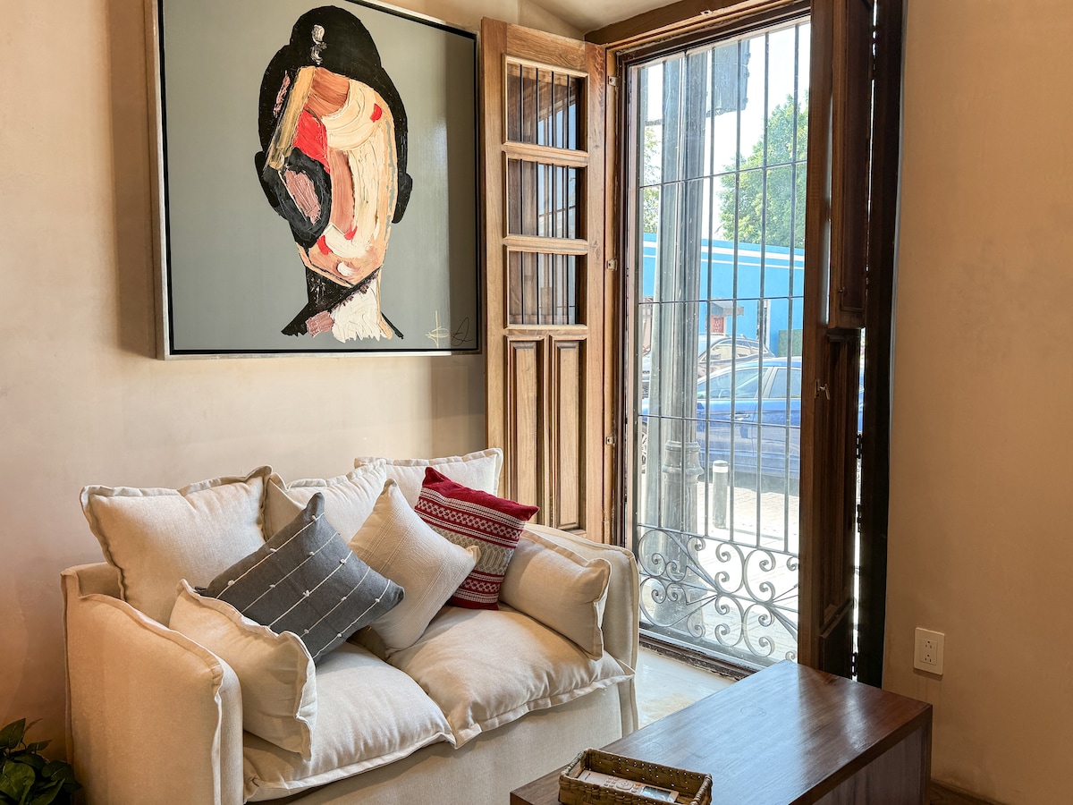 Casa Matisse is located in the Santa Lucía neighborhood, the most desired and traditional area in the heart of Mérida. Perfect for vacation or work, it offers 300Mb WiFi, 2 55" TVs, a mini pool, coffee maker, full kitchen, washing machine, king-size bed, and a sofa bed in the living room. Just one block from Santa Lucía Park, close to the Cathedral and Paseo de Montejo.