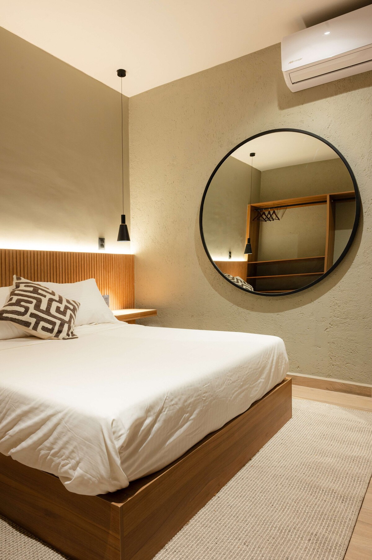 La suite esta equipada para brindar el mayor confort. Descanse en sus camas con colchón memory foam mientras ve una película en la smart TV, WIFI alta velocidad. Disfrute de un buen baño en una regadera con acabados de alta calidad. Contamos con servicio de aire acondicionado para tu mayor comodidad con un costo de $150MXN por 1 noche , mas de 7 noches $100 MXN por noche, mas de 30 noches $66 MXN por noche.