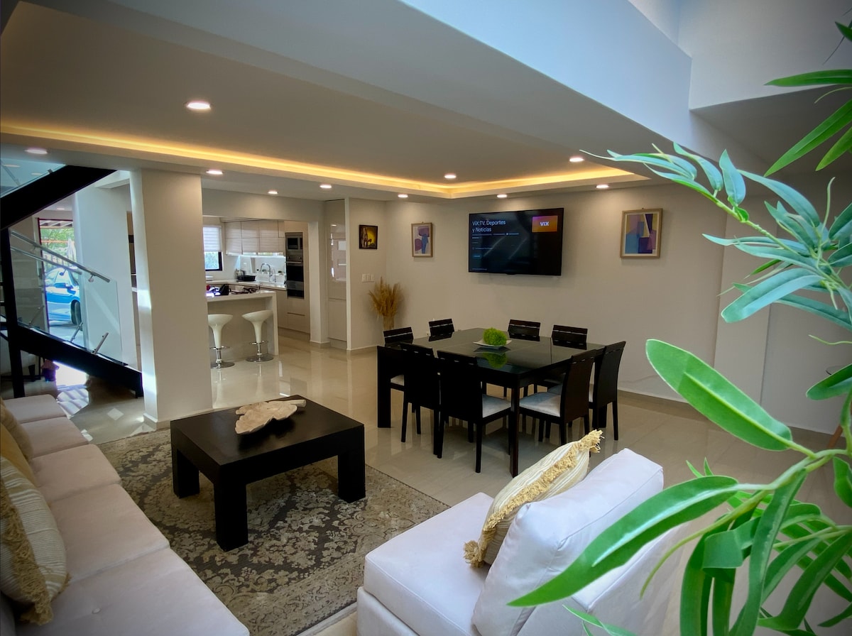 Brand-new, located in the heart of Juriquilla, this 160 m2 apartment offers a one-of-a kind experience, going above and beyond with amenities & entertainment. If you are looking for top quality, look no further and come to the most modern & luxurious apartment in Queretaro for an unforgettable stay Walking distance from Starbucks, Walmart, Bars and top restaurants like Sonora Grill & Hunger, this apartment has it all, comfortable beds, balcony, OLED 4K TVs and a 100" Home-Cinema from your bed