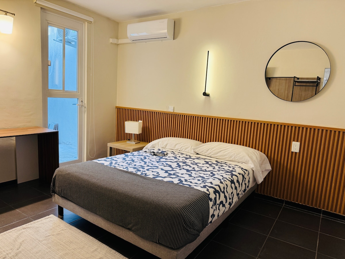 Q23 Apartahotel, En el Centro Histórico de Querétaro ¡Ubicación perfecta para explorar!, sin sacrificar comodidad ni ubicación. A minutos caminando del auditorio arteaga, del Jardín Guerrero y de la vieja estación del ferrocarril. Que hay en tu suite: Una cama Matrimonial Entrada privada y autonoma Baño completo con agua caliente Privado Smart TV WiFi en todo el hotel Nota: Por el momento, no contamos con estacionamiento.