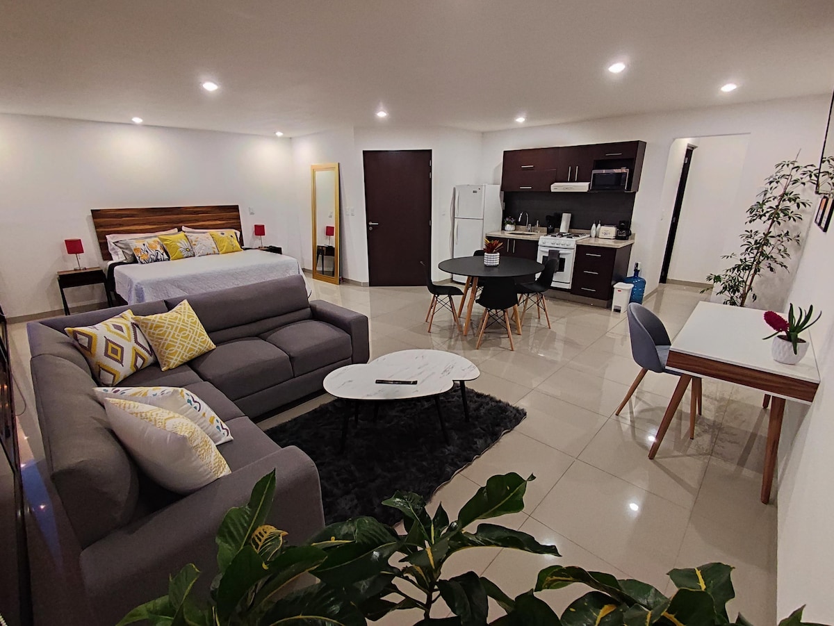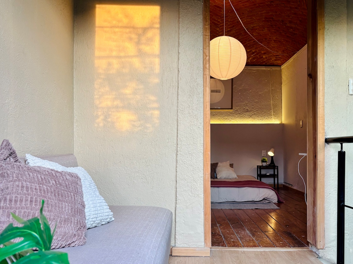 WOW!!! impecable, práctico y acogedor loft en el Centro Histórico. Cada detalle está diseñado para que disfrutes una estancia cómoda y funcional en Querétaro. Vivirás en el corazón de la ciudad con restaurantes, plazas, museos y sitios históricos a solo unos pasos. Ideal para estancias largas o trabajo remoto: espacio tranquilo, buen internet y zona cómoda para trabajar. Recién remodelado, edificio tranquilo, altos estándares de limpieza y confort. Opción de estacionamiento muy cercano.
