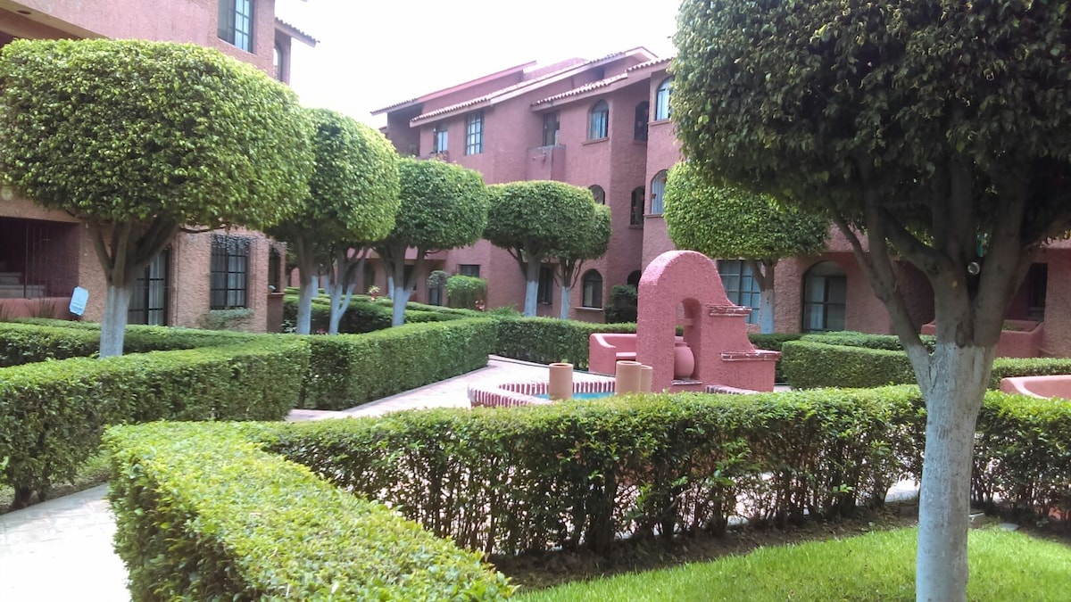 Comfortable and stylish apartment with a cheerful style. It has all the amenities of a luxury apartment such as a pool, roof garden, childrens playroom, business center, private parking, 24/7 vigilance and a gym. Enjoy the new chic area of Querétaro, with the best view of the natural reserve "El Tángano" and of the city. Very close to the bus terminal, the highway to Mexico City and the exit to the International airport. Important to confirm the number of guests.