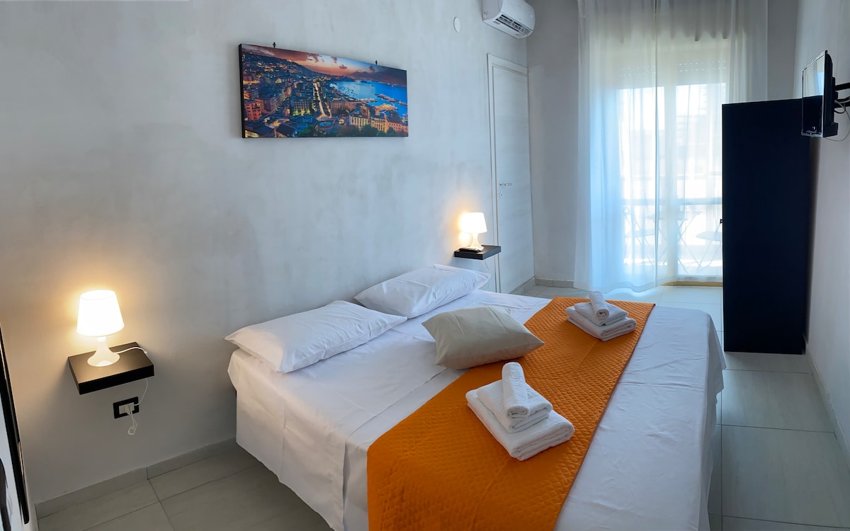 Situata nel cuore di Napoli, a pochi minuti a piedi dal centro storico, dalle migliori pizzerie e dai luoghi della cultura, ben collegata con metro, stazione dei treni, bus, aeroporto, porto e autostrada. La camera, decorata con presepe napoletano artigianale, dispone di bagno in camera e balcone panoramico privato, con possibilità di letto matrimoniale o singolo. Cucina e ingresso in comune, colazione inclusa. Possibilità di parcheggio per strada o garage convenzionato. Ascensore nel palazzo.