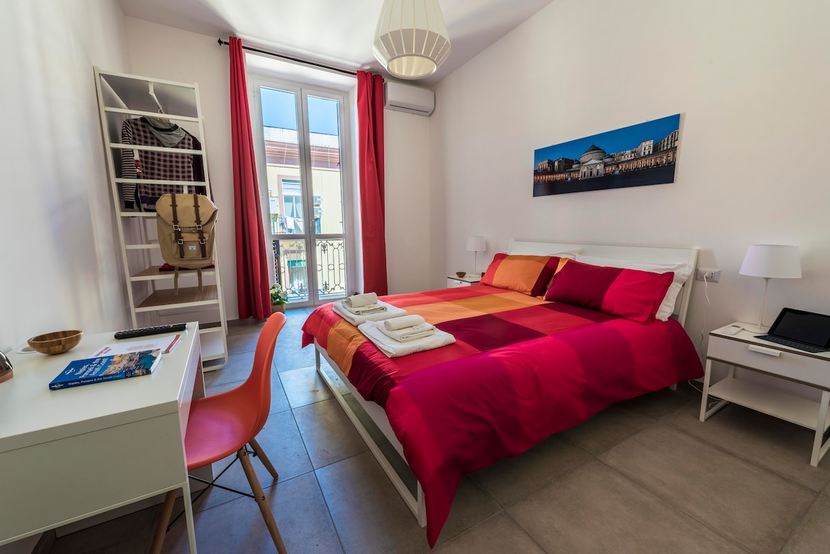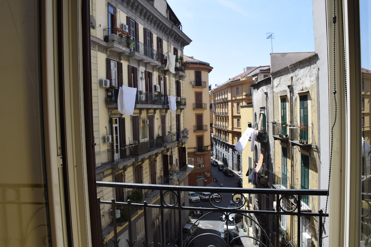 Located in the heart of Naples, on the top floor of a historical building with great views. spacious, air-conditioned, 2 bedrooms, both bathrooms with a shower, a super spacious fully equipped kitchen, big balconies, and a lovely roof terrace where you can enjoy the view of Vesuvius and the castle. The flat is within walking distance of the most important monuments! The Metros & cable car are just 5 Min walking distance (please note that it takes roughly 20 stairs to get to the elevator).