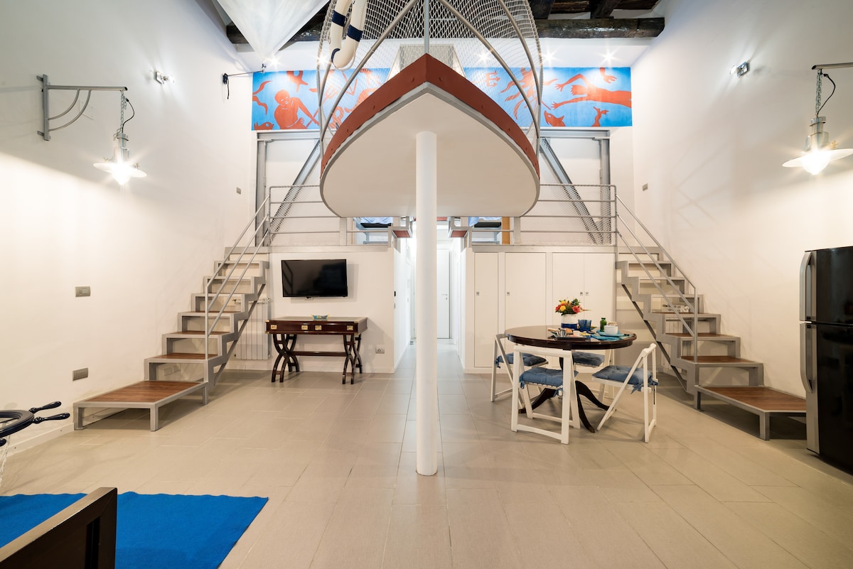 La casa si trova su via Duomo (adiacente al museo Filangieri), al quarto piano di un palazzo storico dotato di ascensore e portineria; è dotata di cucina attrezzata, bagno privato, e una zona letto soppalcata (sulla quale è possibile solo dormire data la poca altezza). Si trova a 100 metri dalla linea 1, stazione " Duomo". E' a pochi passi dai principali luoghi di interesse storico-culturale. Immerso nel centro storico partenopeo, in cui si respira la vera anima di Napoli. Lgbtq+ e pet friendly.