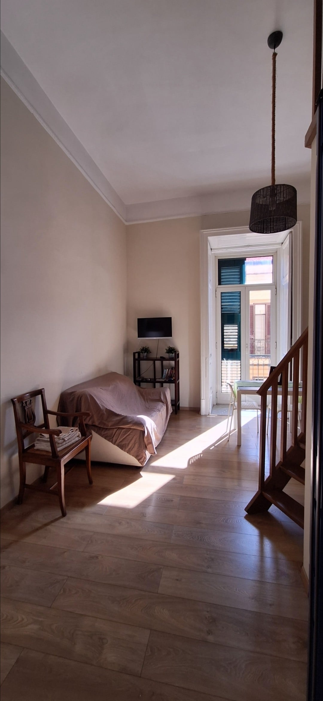 The apartment, completely renovated and renovated in the furnishings in 2020, is located on a fifth and last floor reachable without a lift. This feature makes it very bright and panoramic with views of the city and Mount Vesuvius. A rare exclusivity to be found in an accommodation in the historic center. The furniture is new and modern without forgetting its historical origins and as opposed to an old ruined building dating back to the seventeenth century.