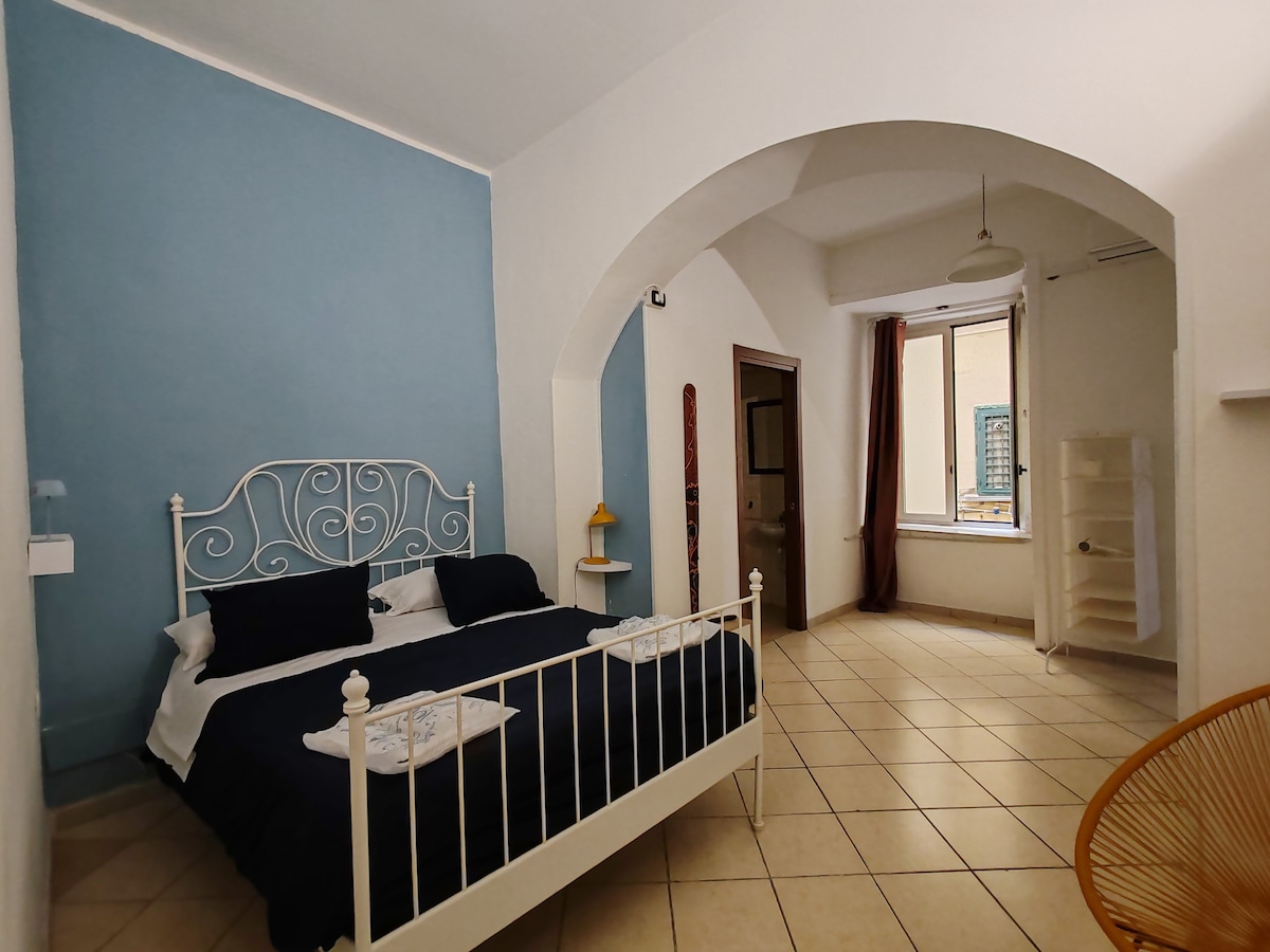 Intero Appartamento ubicato nel centro di Salerno vicino alla Costiera Amalfitana,al mare e a Pompei è ristrutturato in stile mediterraneo e ben arredato,posto al quarto piano di una palazzo anni 50 composto da un soggiorno con angolo cottura attrezzato di tutto ,1 ampia camera matrimoniale o doppia con letto king size,1 camera doppia con due letti e 1 bagno con doccia.L'appartamento è dotato di wifi veloce,smart tv,e air cond e riscaldamento con termosifoni.Free parking in the area of the flat