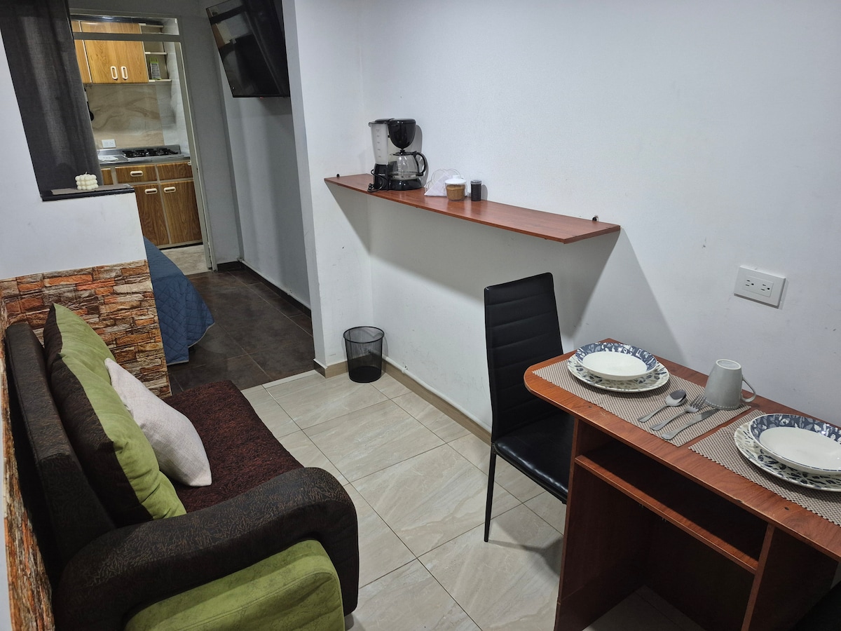 Disfruta de un espacio diseñado con estilo y funcionalidad. Este apartaestudio destaca por su excelente iluminación natural y acabados modernos. Cuenta con una cocina integral totalmente equipada, zona de comedor/trabajo frente a la ventana y una cómoda cama con Smart TV. Ubicado estratégicamente en Suba, a solo unos pasos de la estación de bus, es el lugar perfecto para quienes buscan comodidad y conexión con la ciudad.