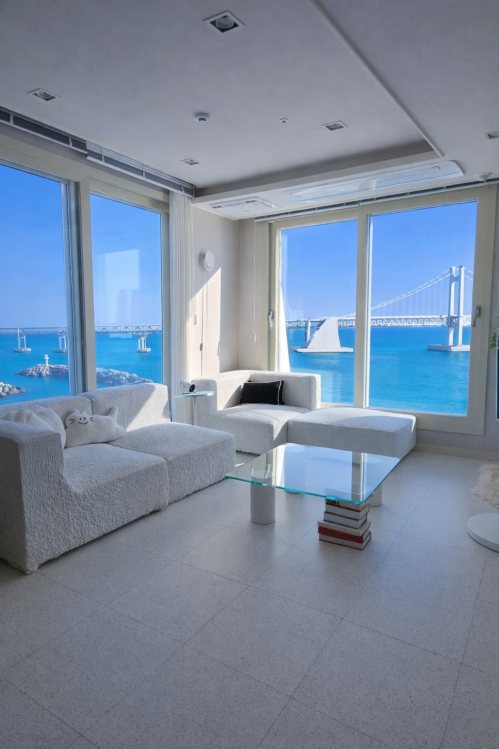 🌊 광안리 압도적 파노라마 오션뷰 ✨ 신축 프리미엄 20평 숙소 ✔ 공유숙박 합법업체 등록 ✔ 광안대교+풀 파노라마 오션뷰 ✔ 광안리 유일무이 무료주차 문 열자마자 “와!” 하는 감탄 1등 숙소예요🤍 가족/우정/커플 여행 모두 만족도 200%! 🛏 최대 7인(퀸 6인 + 엑스트라베드 1인) 퀸침대 3개, 슈퍼싱글침대 1개 총 3대 에어컨(거실+방2) 암막커튼 & 무드등 🌊 오션뷰 특권 거실&안방에서 광안대교·일출·야경·불꽃축제직관✨ 소파에 앉아 파노라마오션뷰 감상 🚗 위치 & 편의시설 밀락더마켓 도보 30초, 편의점 1초, 광안리 해변, 횟집, 식당, 카페, 지하 3개층 무료주차 🕒 체크인 16:00 / 체크아웃 11:00 🎉 오픈 이벤트 ✔ 얼리체크인(1시간) ✔ 레이트체크아웃(1시간) ✔ 체크인 전 짐 보관 가능 위 3가지 중 하나만 선택하신 후 호스트에게 사전 문의 주세요.(체크인 전 미리 협의시에만 도와드릴 수 있어요.)🥰 편하게 문의주세요! 🙌