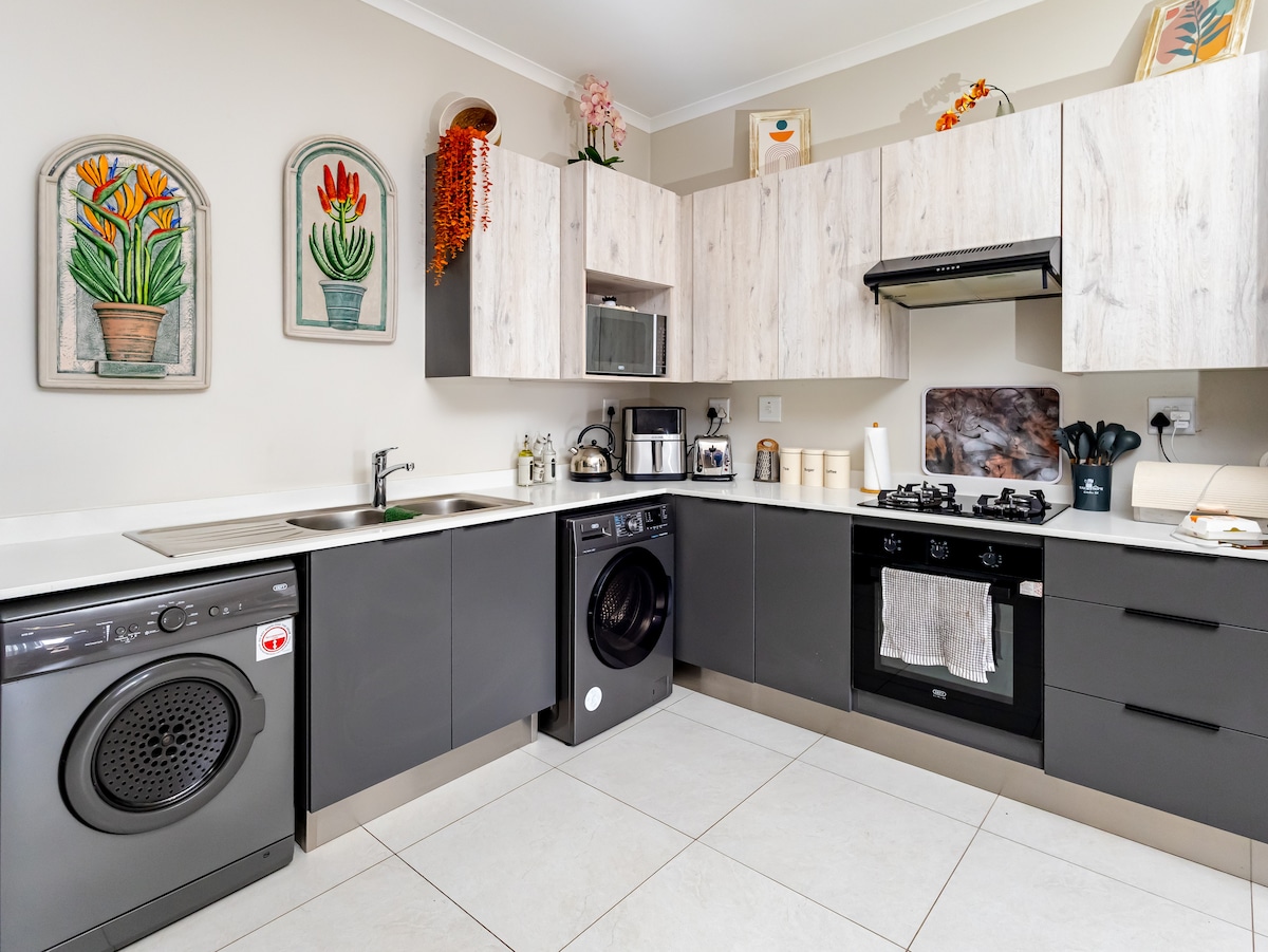15 Min from OR Tambo. This chic black-and-white space, in a secure gated complex, offers a perfect blend of comfort and convenience. Enjoy a dedicated parking spot, lock-and-go lifestyle, and remote gate access. With a luxurious queen bed and double bed, office space, and high-speed Wi-Fi, it’s ideal for work or relaxation. The fully equipped kitchen includes a gas hob and dishwasher. Relax on the cozy balcony and enjoy premium furniture, bedding, and dining essentials.
