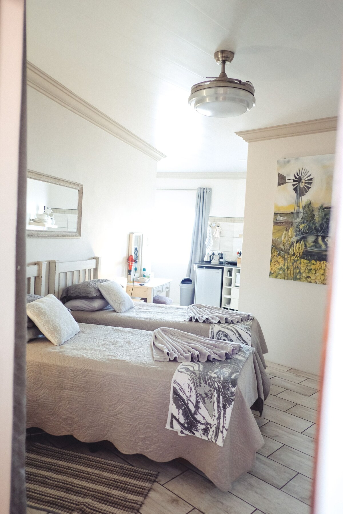 This light-filled apartment is fully private with its own entrance, separate from the main house—perfect for peace and quiet. Inside, you’ll find a cozy bedroom with an en-suite bathroom, plus a spacious living area with a dining space and a kitchenette for your convenience. The apartment is powered by solar backup electricity and a solar geyser, so you can enjoy a comfortable stay without the hassle of load shedding. We share our home with two dogs and a cat—friendly family pets who love people