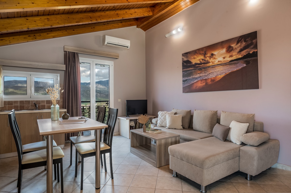Welcome to Angelina, a chic and cozy rooftop apartment nestled in the heart of Sami, just a stone's throw away from the sparkling sea. With its prime location it serves as the perfect launching point for exploring the entire island, and offers the quickest connection to the nearby island of Ithaca. And after a day of adventure, unwind on the spacious private terrace and savor the fresh mountain and sea breezes.