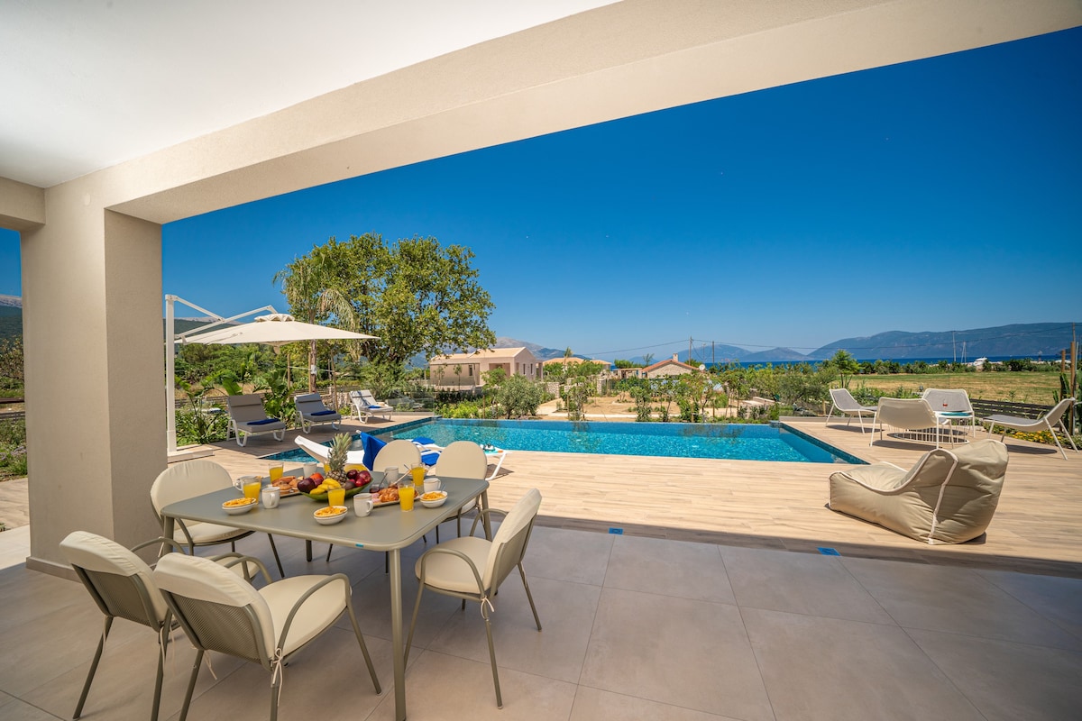 A wonderful, brand new villa, with a private pool, right in front of the beach, for sea lovers! It is a two-storey, three-bedroom villa, with wonderful mountain and sea views, and is within walking distance of the port of Sami, with its various choices of restaurants and cafes.