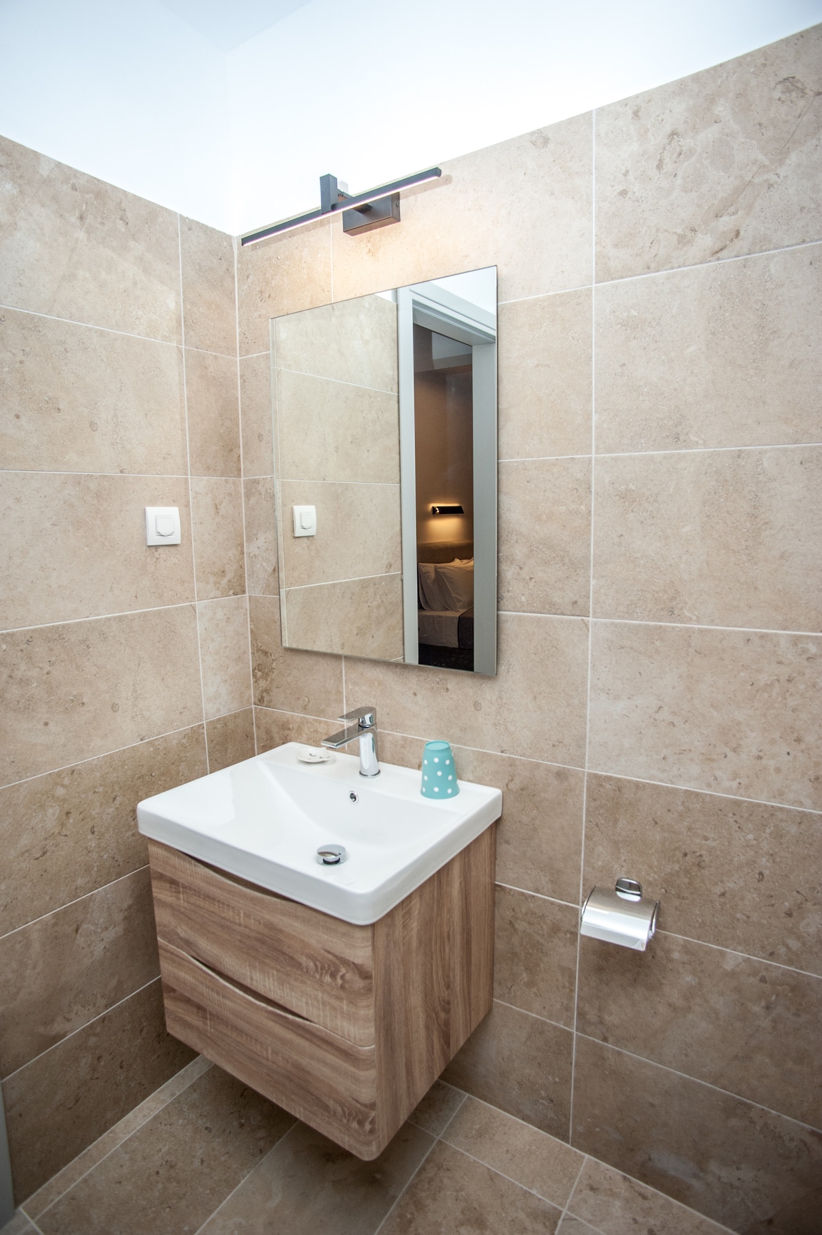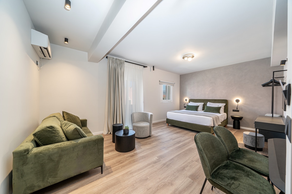 This suite is located on the second floor of the building with a breathtaking sea view on the gulf of Argostoli. Enjoy the contrast of the blue of the sea and the green of Mount Ainos before meet again the blue of the sky. The balcony is the ideal place for relaxing. Includes a heavenly comfortable double bed and one of the kind bathroom with exquisite decorative elements that elegantly combine earthy colors with a minimal cosmopolitan vide.
