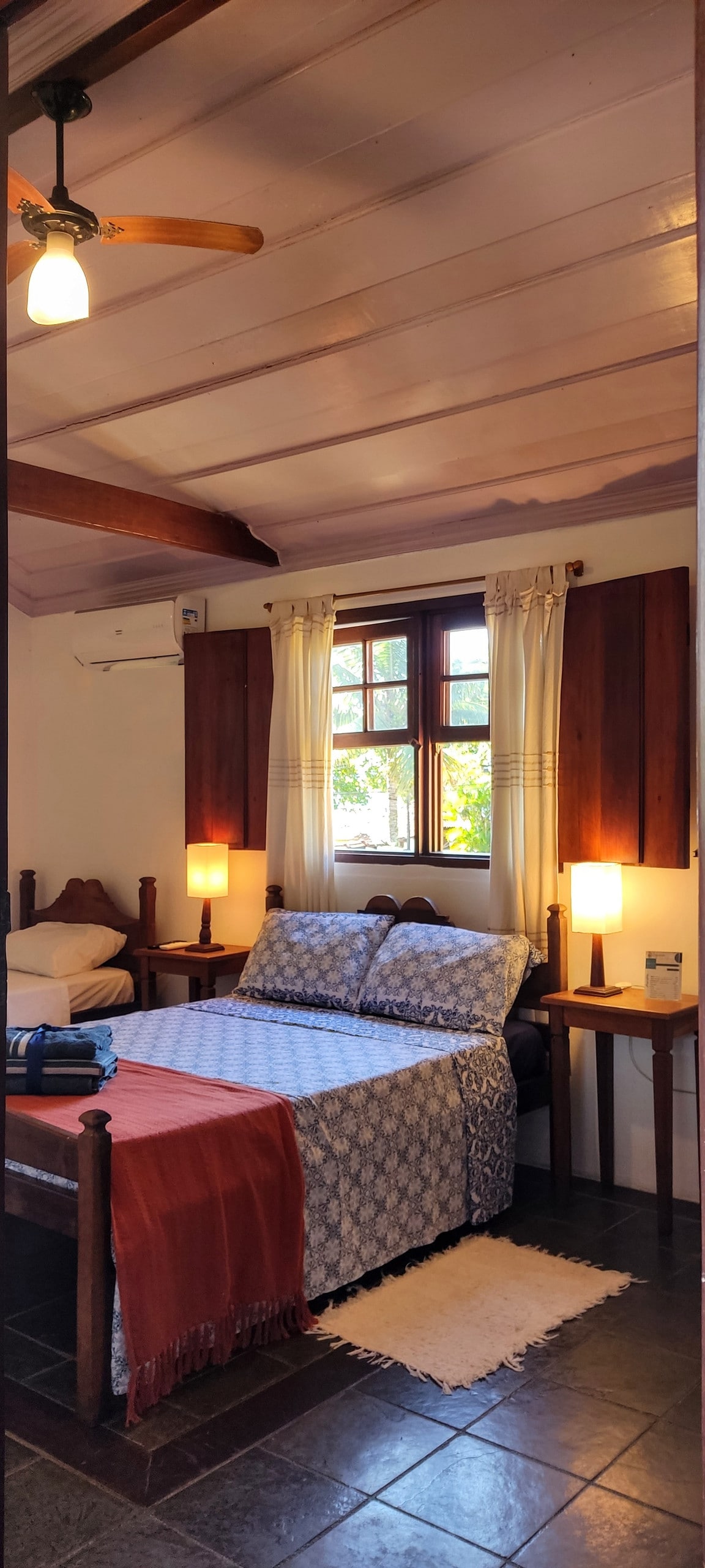 Seja bem-vindo ao Hostel Morada do Sol, o seu refúgio em Paraty! Oferecemos uma experiência única que permite a você explorar todas as belezas da nossa cidade histórica sem comprometer o seu orçamento. O quarto compartilhado misto é ideal para viajantes que buscam socializar e fazer novas amizades, com 3 beliches para até 6 adultos e para a sua privacidade, temos divisórias de cortinas e disponibilizamos armários onde você pode guardar seus pertences com segurança utilizando um cadeado.