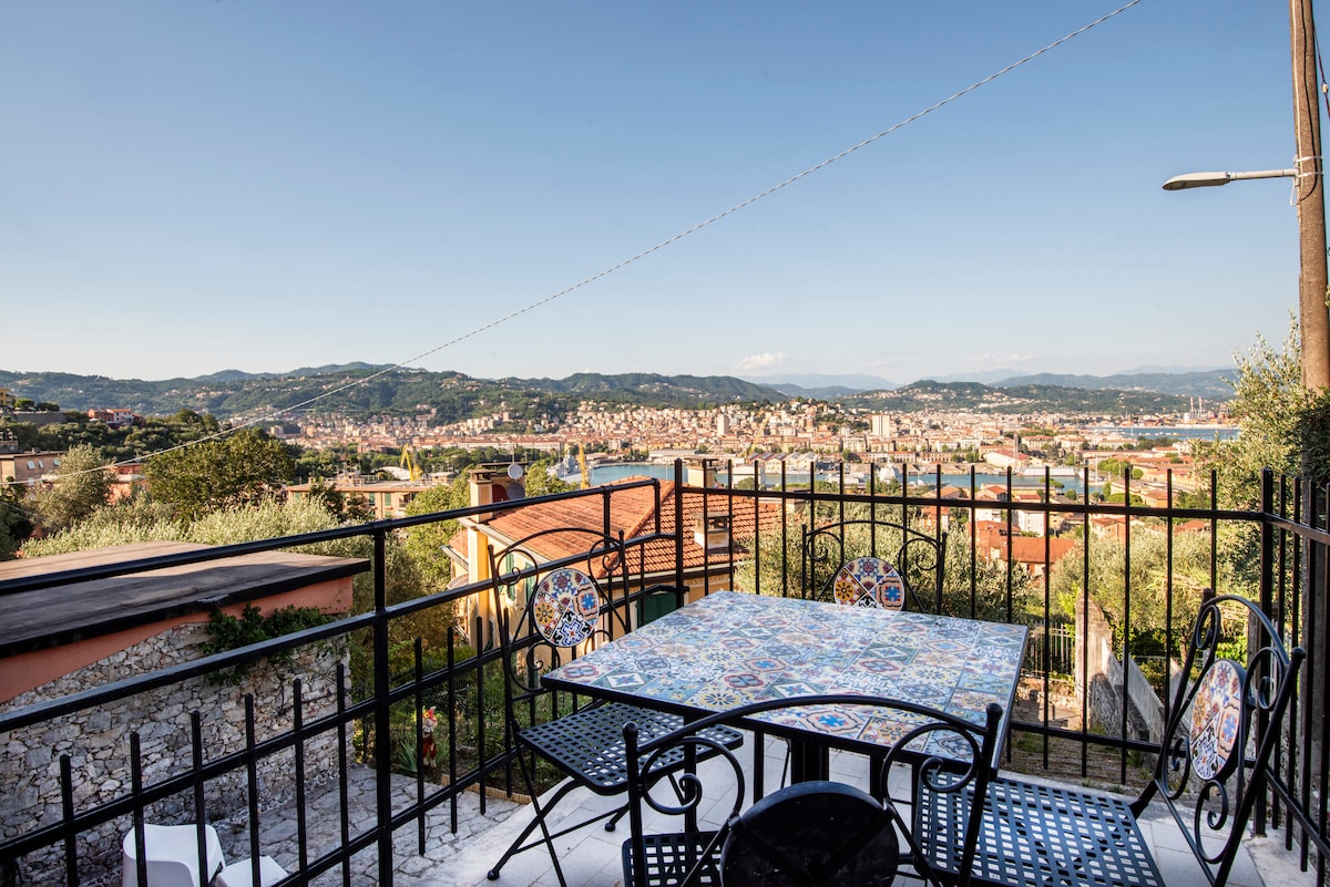 Casa indipendente a 5 min dal centro di La Spezia, 15 min da Portovenere e sulla strada per le 5 Terre. Composto da: - 1 elegante salotto con travi a vista e comodo divano letto - 1 angolo cucina e zona pranzo con tutti i comfort - 2 camere matrimoniali con travi a vista italiane e provviste di biancheria professionale e sistemi oscuranti; - 1 bagno con doccia 60x60cm - Giardino privato vista mare • Wifi gratuito • Parcheggio pubblico gratuito in strada 011015-LT-3185 IT011015C24ORWVAWC