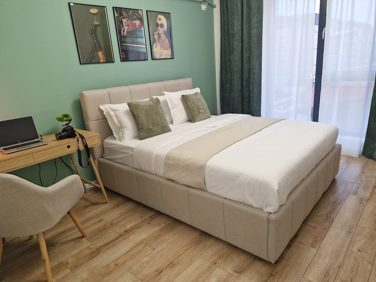 Central, modern and functional apartment, perfect for business stays or short visits in Ploiești. Enjoy high-speed Wi-Fi, a comfortable workspace, easy self check-in and quick access to key business and leisure points across the city