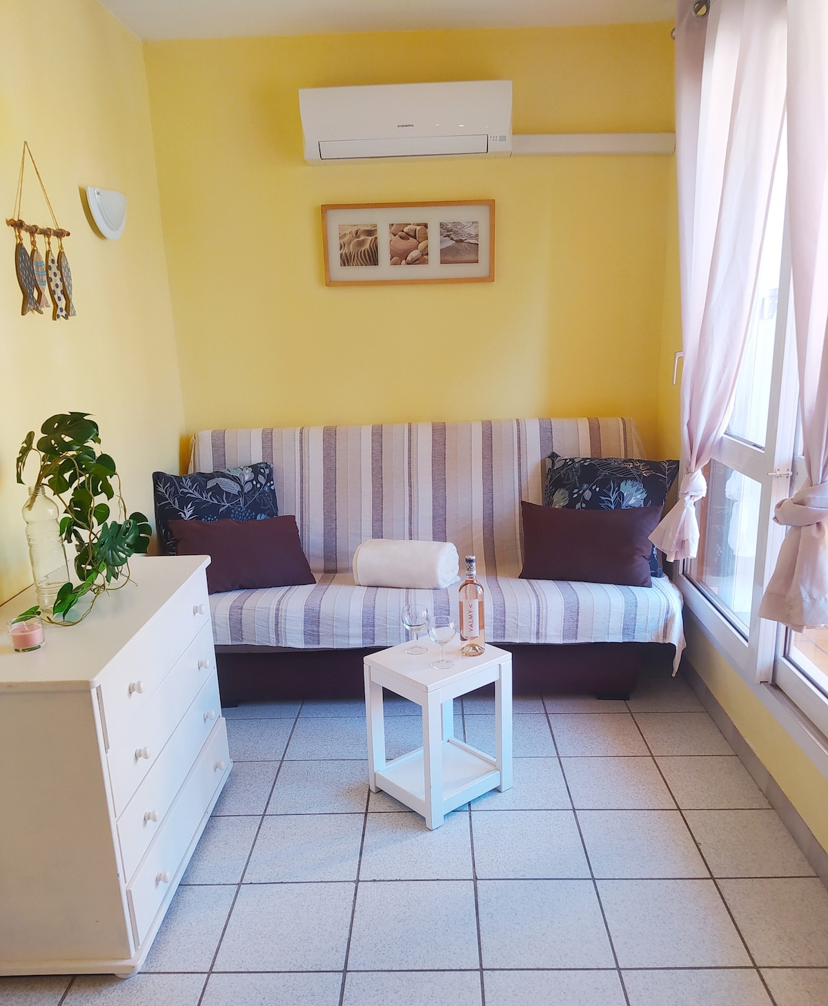T2 tout confort, (créé au RDC d'une maison avec accès indépendant) composé de: - Salon/ Séjour avec cuisine ouverte équipée (four, plaque cuisson, micro-ondes etc), canapé-lit 2 personnes, TV, une salle d'eau et un WC séparé - 1 chambre sur mezzanine avec un lit double - WIFI : Fibre et CLIM réversible Logement situé sur les hauteurs du village dans un quartier tranquille, à environ 15 minutes à pied du centre ville de Cerbère où vous y trouverez quelques commerces ainsi que les plages.