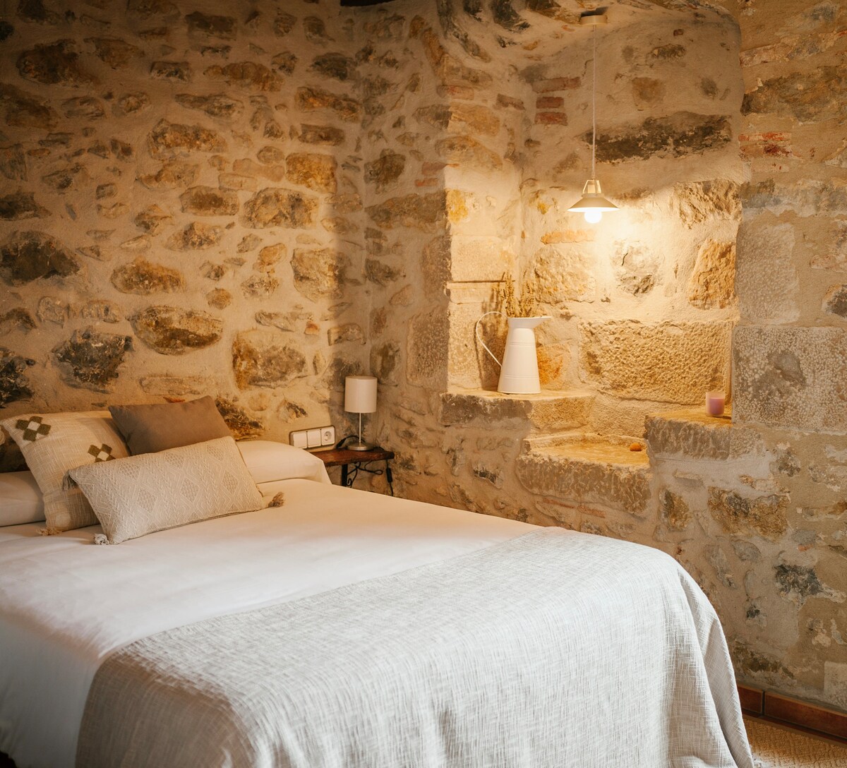 Mas Vinyoles Natura is a large farmhouse from the 16th century. XIII, rehabilitated with historical criteria; It is located 80 km from Barcelona, ​​in a natural environment, surrounded by fields and forests, energetically sustainable and with an incredible indoor pool and a soccer field. The use of the jacuzzi will be affected according to the drought emergency states established by the government of Catalonia. As of 05/07/2024, the emergency phase has been lifted and its use is possible.