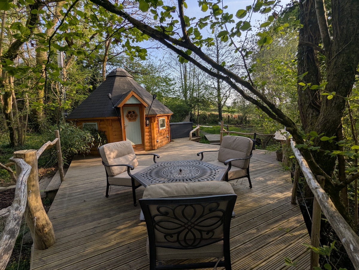 The Cwtch is a cosy cabin with a log burner and bi-folds that lead out onto a decked area with stunning views of the rolling hills, a perfect place to enjoy a glass of wine in the evening! Outside is a large bath for those who want to have a relaxing evening under the stars. Whether you're looking for a romantic getaway or somewhere to unwind and chill, our cabin will make you feel right at home. Only a 15-minute drive to Lampeter & a 45-minute drive to the seaside towns of Aberaeron & New Quay