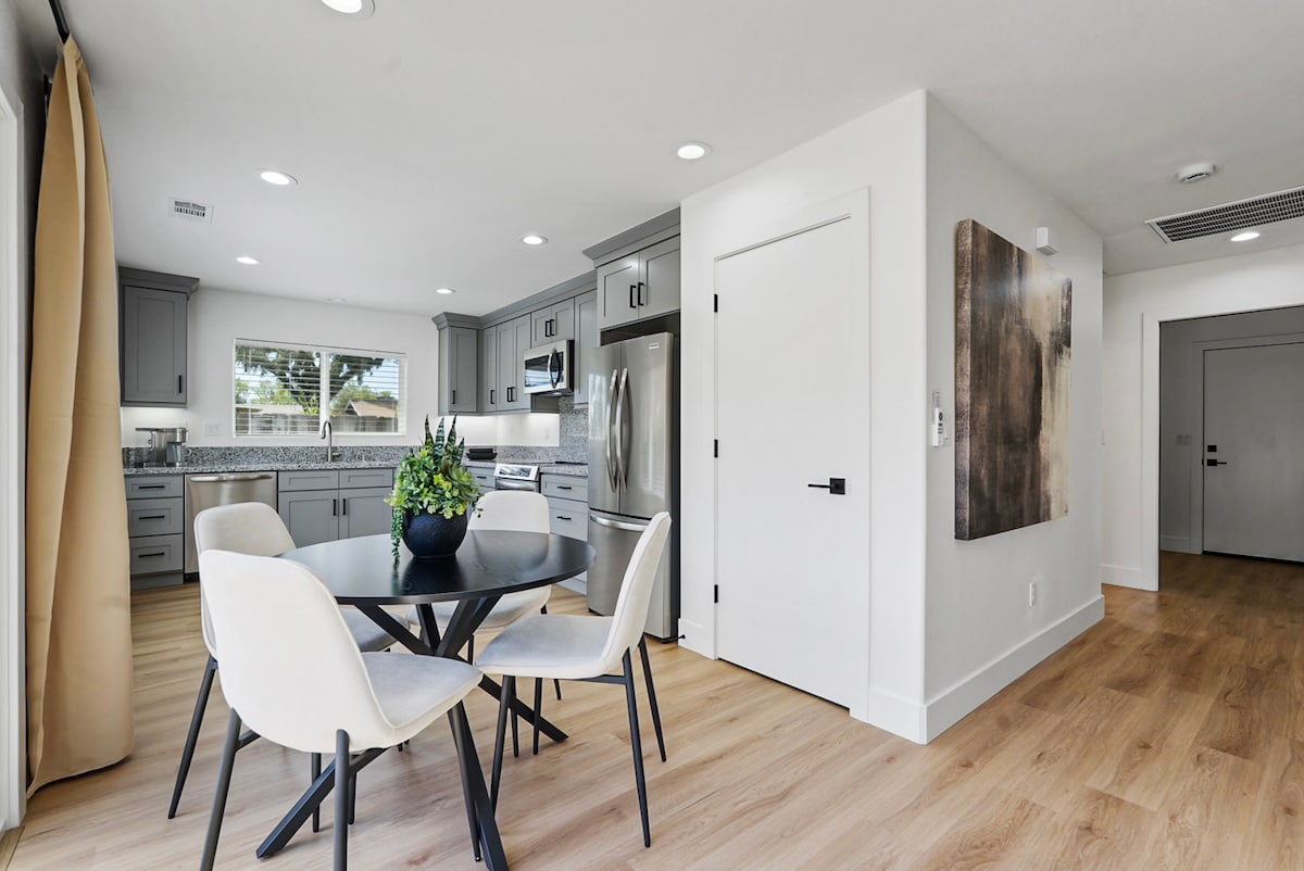The Heart of the Valley takes it's name after what the city of Turlock represents to the Central Valley, it's heart. I wanted to use this as inspiration to create a home the embodied this. I worked closely with local interior designer, Marísela Rodríguez, to come up with a home design where guest can enjoy the convenience of modern technology while still having that warm, welcoming feeling a farmhouse has to offer.