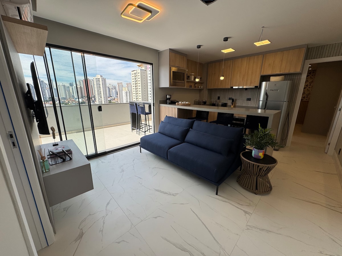 Apartamento moderno (recém inaugurado) 1º Andar com varanda, ar condicionado, suíte privativa e segurança 24 horas. Possui design moderno e funcional com 40m², 100 % mobiliado e decorado com itens de alta qualidade e todos utensílios necessários para estadias de longa e curta duração (até 4 pessoas). Localização excelente no bairro Jardim Anália Franco, com fácil acesso a parques, restaurantes e transporte público. A 3 minutos do Shooping Anália Franco, 23 minutos do Aeroporto de Guarulhos.
