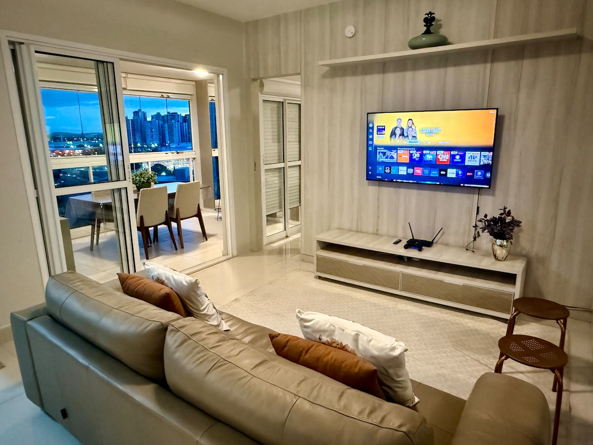 Have an excellent stay in this beautiful and cozy flat located in Metropolitan Sydney close to one of the best parks in Goiânia, Parque Flamboyant and Shopping Flamboyant. Fully furnished, with a complete trousseau, bed and bath, equipped kitchen, Smart TV, Wi-Fi, keyless check-in and air conditioning in the rooms for maximum comfort.