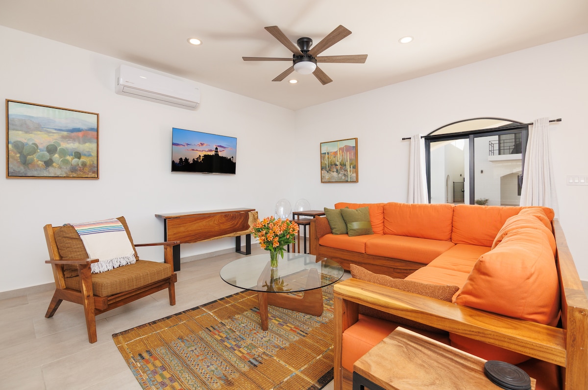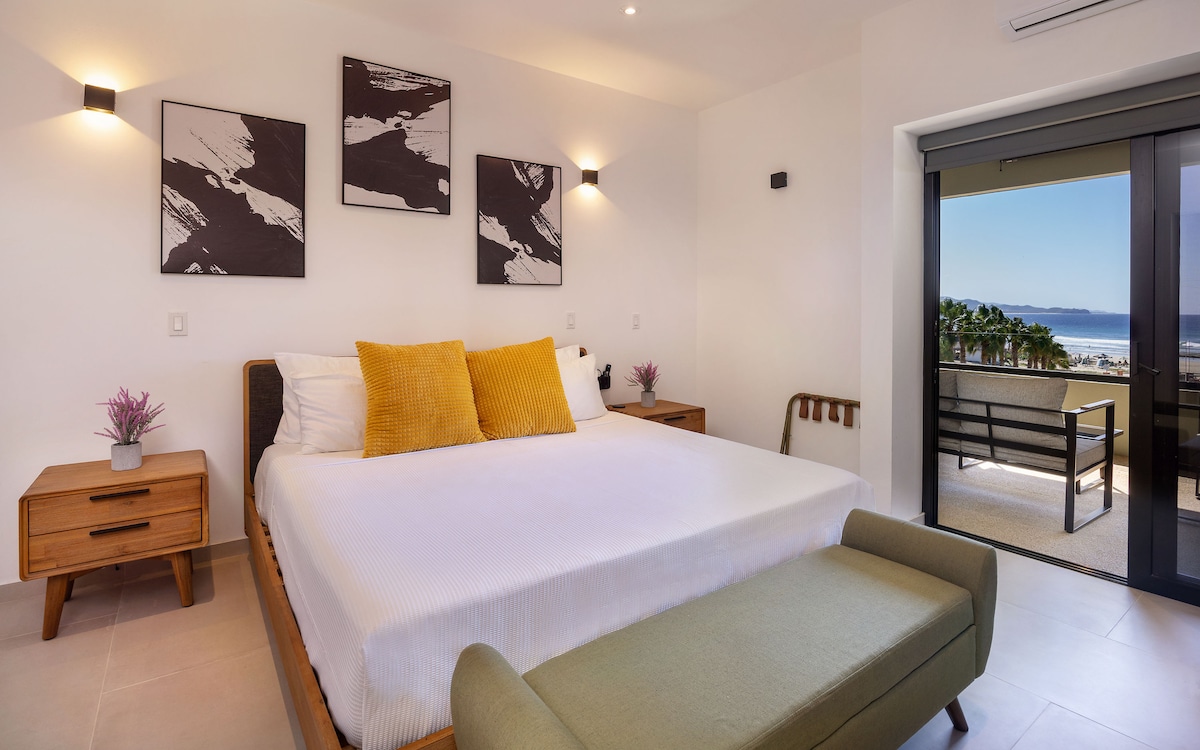 It doesn´t get any closer to Playa Los Cerritos! Our condo is a spacious suite with a beachfront terrace to check out the surf or enjoy one of the most beautiful sunset in Baja. The space has everything you need to live on the beach: - A master bedroom and two bathrooms. - One King size bed for your comfort. - A couch in the living room for the little one or the thrifty friend that you love. - A Kitchen to prepare the catch of the day. There are also 2ACs (in the living room and the bedroom)