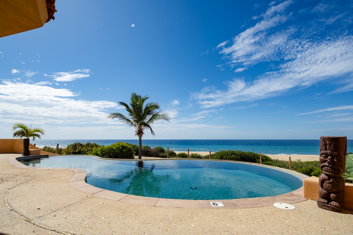 Affectionately known as ‘Dinosaur Eggs’ for its quirky building style, sitting high above a private beach cove, this ancient lookout was a gathering place for families of local fisherman waiting for their loved ones to return from sea. With jaw dropping views of the Pacific, minutes from Todos Santos, world class restaurants and barefoot bars, it sits between the San Pedrito and Cerritos surf breaks. Enjoy epic whale watching from the home’s huge back deck, fire pit and infinity edge pool.