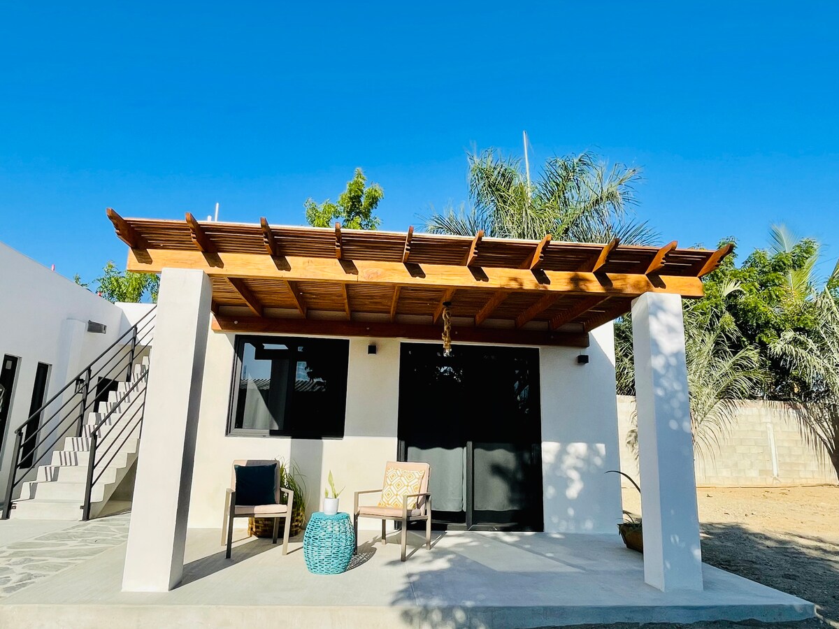 Welcome to Villas del Scarlet Cardones! Retreat to our peaceful downstairs condo in the heart of Cerritos. This is the only swim-able beach north of Cabo on the Pacific! Take in the ocean views and amazing Sierra de la Laguna mountain range from the property on your very own rooftop balcony. The condo is a 2 minute walk from the beach, restaurants and bars. We're located around 1 hr from Cabo and only 7 kilometers from Todos Santos. A/C, Pool, Hot Tub, Outdoor Grill Area, & WIFI!