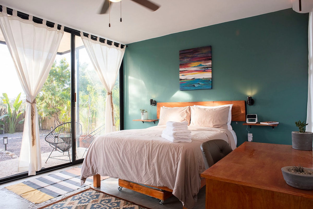 Nature meets modern in this newly remodeled casita just a few minutes away from the beach, so close you can actually hear the ocean! This fully-furnished home has everything you might need for a perfect stay in Todos Santos. The garden is nothing short of spectacular! Lush greenery, tropical fruit trees and fresh herbs, hammocks, and plenty of space to enjoy the crisp air of this town make this location the ideal vacation home.