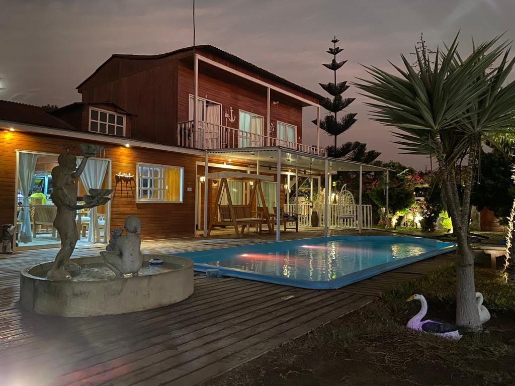 VILLA TERRAM: NATURE, FUN & PEACE Escape to our countryside home in Azpitia, a 2,600 m² oasis just 90 minutes from Lima—perfect for relaxing in an eco-friendly setting. Unwind by the pool, enjoy our outdoor and board games for all ages, and fire up a delicious BBQ. We’re 100% PET friendly—your furry friend will have plenty of space to run and play. We’re close to the village, where you’ll find great food, outdoor adventures, local pisco, and more. Unforgettable moments await!